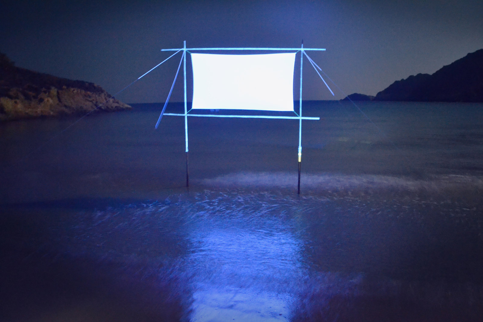 Το τελευταίο βράδυ, οι 9 καλλιτέχνες αποφάσισαν να παρουσιάσουν, σε ντόπιους και τουρίστες, τα αποτελέσματα του υδάτινου πειράματος, στήνοντας μια αυτοσχέδια, πλωτή οθόνη, από μπαμπού και πανιά στην άκρη του λιμανιού. Τίτλος της έκθεσης ήταν «Πώς να νερό» ή αλλιώς «how to water». Πλήθος κόσμου μαζεύτηκε, με έντονη περιέργεια, μεταφέροντας στο σημείο ποτά και ξαπλώστρες, για να απολαύσει την προβολή. Μπροστά στα μάτια των θεατών εμφανίζονταν εικόνες από τον βυθό της θάλασσας, ”εξωγήινα” γλυπτά, πτήσεις με drone ελικόπτερα και αυτοσχέδιες βάρκες. Μία πρωτότυπη παράσταση, μια διαρκής performance αυτοσχεδιασμού, με έντονο το υδάτινο στοιχείο, σε κάθε πιθανή μορφή του. Η νυχτερινή προβολή ολοκληρώθηκε με πολύ χορό, μουσική και βουτιές ενώ το ραντεβού των καλλιτεχνών ανανεώθηκε για το επόμενο καλοκαίρι, στο ίδιο μέρος.