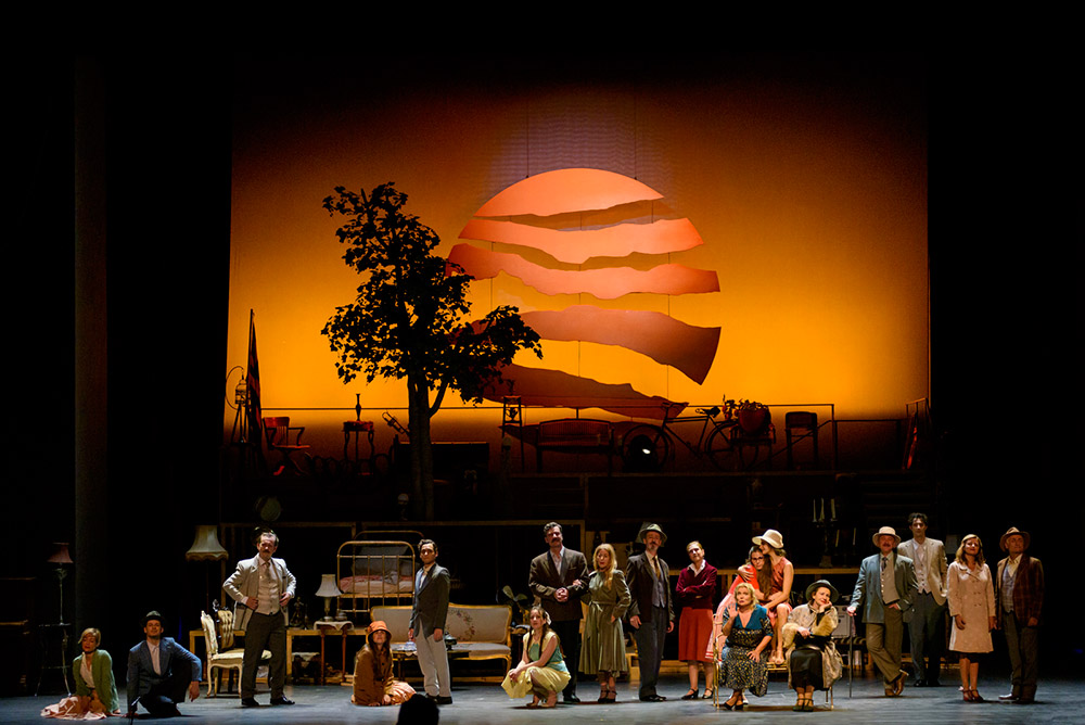 Ο Πάρης Μέξης είναι αλήθεια ότι έστησε ένα σκηνικό διάφανο και ανάλαφρο ώστε να ενταχθούν στα επίπεδά του οι πολλαπλές και οι παράλληλες σκηνές του κειμένου, είτε ζωντανά είτε ως ταμπλώ βιβάν. Και το φώτισε έξοχα ο Αλέκος Γιάνναρος. Και στην αρχή, που τα πράγματα ήταν ανάλαφρα και αθώα, ο ρυθμός της παράστασης κυλούσε γοργά και εξίσου ανάλαφρα με την αθωότητα των αρχών του 20ού αιώνα, παρότι ήταν φανερό ότι ο Κωνσταντίνος Μαρκουλάκης είχε πατήσει στις παραδόσεις και τις φόρμες του φαντασμαγορικού λαϊκού θεάτρου, που όμως, αυτές οι παραδόσεις κι αυτές οι φόρμες πολύ σύντομα πρόδωσαν το κείμενο που κλήθηκαν να ζωντανέψουν. Και αναγνωρίζοντας πόσο δύσκολο είναι να κάνει κανείς διασκευή σ’ ένα τόσο πυκνό και πολυεπίπεδο κείμενο, θα έλεγα ότι και η διασκευή μπάταρε δίνοντας χώρο και χρόνο σε σκηνές που νομίζω είναι το φόντο στο βιβλίο του Ταχτσή, ή συνδετικές της αφήγησης, όπως η σκηνή της δίκης του Δημήτρη που δεν αντιλήφθηκα γιατί ξεχείλωσε τόσο.