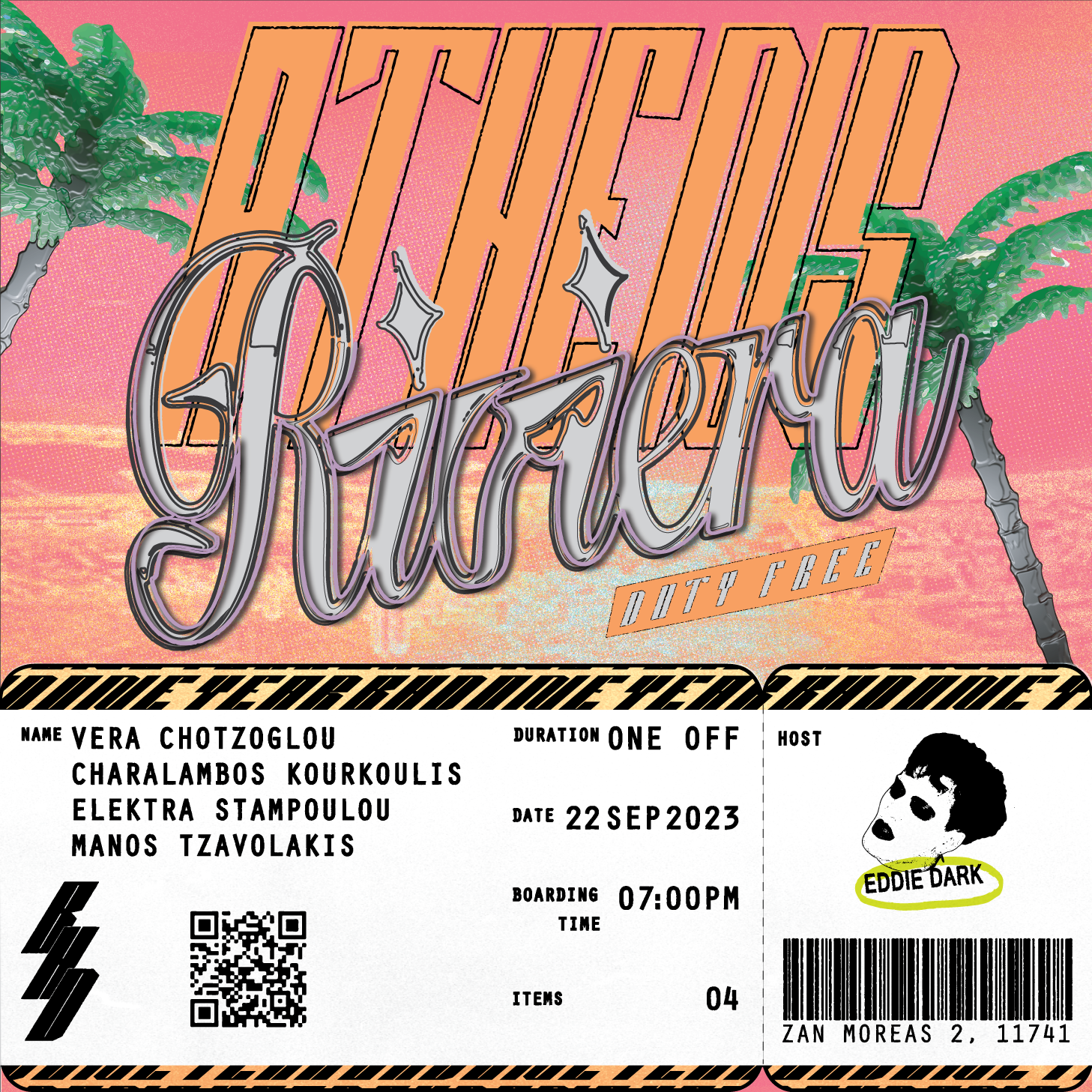 H «Athens Riviera Duty Free» είναι μία έκθεση-προσομοίωση one off. Ένα duty free μόνο για μία μέρα, στο στούντιο BHD στο Κουκάκι. Τέσσερις καλλιτέχνες, οι Βέρα Χατζόγλου, Χαράλαμπος Κουρκούλης, Ηλέκτρα Σταμπούλου και Μάνος Τζαβολακης, δούλεψαν πάνω σε αντικείμενα-έργα τέχνης για πολύ μικρό χρονικό διάστημα. «Όλα τα αντικείμενα είναι προς πώληση. Όλα στις μέρες μας έχουν μία τιμή. Ακόμα και η ψυχή μας», γράφει η ανακοίνωση για την έκθεση.