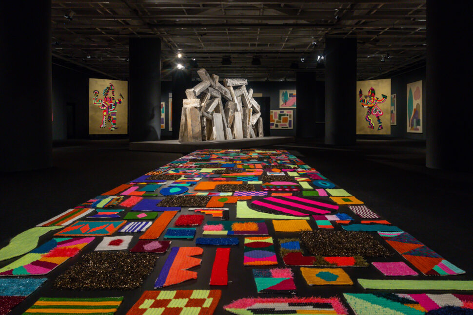 Χρειάστηκαν δύο χρόνια για να δημιουργηθούν τα έργα και σε κάθε συνάντηση τα δύο αδέρφια έφερναν και από ένα κεντηματάκι που έφτιαχναν η μητέρα και η θεία τους. Τα παραδοσιακά κεντήματα και υφαντά που έχουν φτιαχτεί από τα χέρια της μητέρας και της θείας τους συναντούν την ποπ φωσφοριζέ κουλτούρα, τα γλυπτά και οι εγκαταστάσεις έχουν δημιουργηθεί από κομμένα μάρμαρα των παλιών πεζοδρομίων της Αθήνας, οι εντυπωσιακές “Working Class Madonnas” σε καλούν να τις περιεργαστείς λεπτομερώς, οι μεγαλοπρεπείς πίνακες με σχέδια χωρίς περιγράμματα δημιουργούν αχνά τοπία σαν φαντάσματα, τα μαύρα καφάσια αγκαλιάζουν το φως και ξορκίζουν τον θάνατο.
