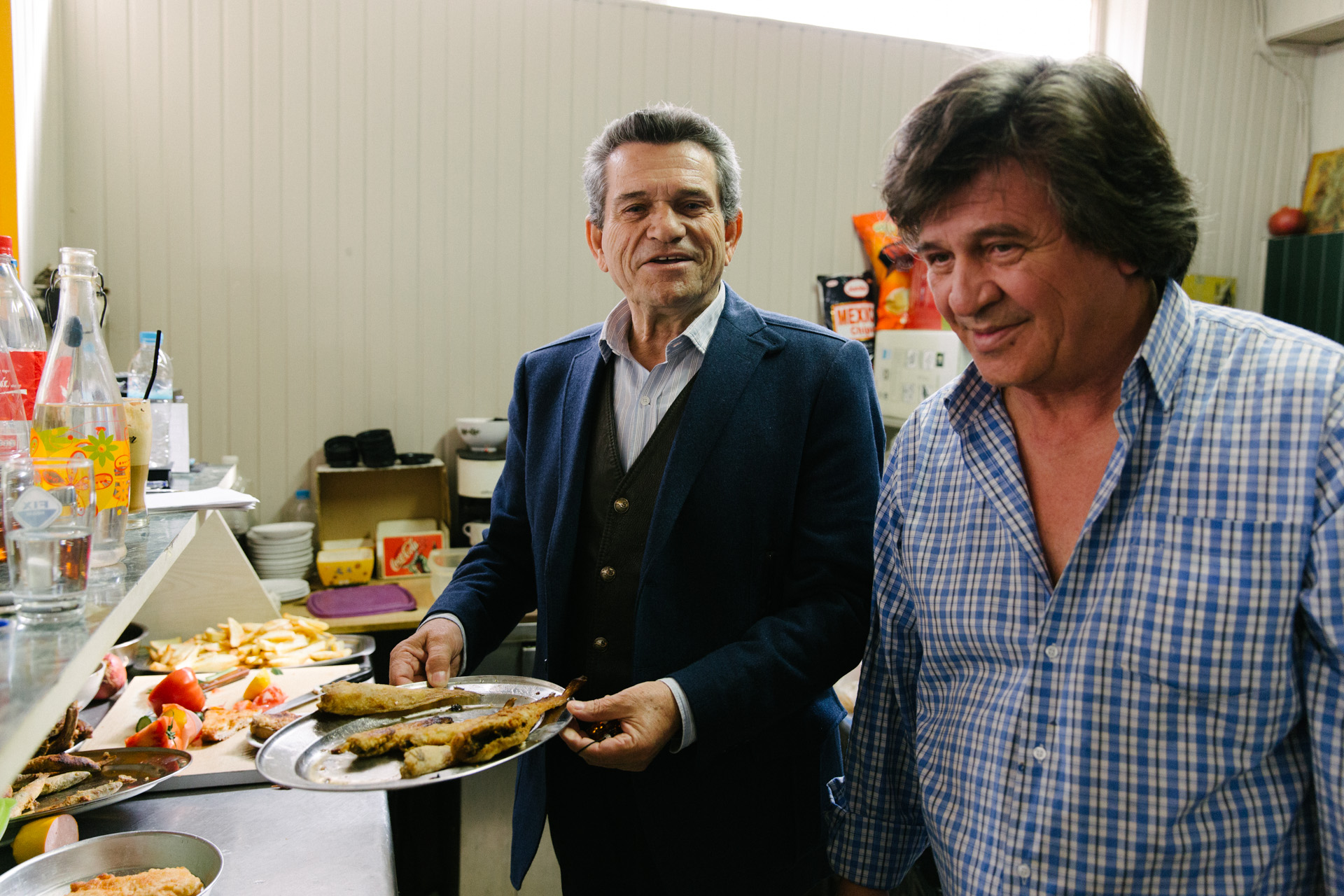 Προς τιμήν του, δεν κωλώνει να μιλήσει για τις αδυναμίες του, για πλευρές που σε άλλους καλλιτέχνες μένουν τεχνηέντως κρυφές: «Το πάθος μου το μεγάλο εμένα ήτανε ο τζόγος. Τον έχω κόψει εδώ και τριάντα χρόνια, αλλά τότε έπαιζα. Κι όποτε έριχνα μια καλή ζαριά, είχα και τις κρυψώνες μου». Περιμένει δυο δευτερόλεπτα, γνωρίζοντας πως μου έχει τραβήξει την προσοχή και συνεχίζει: «Ξέρεις ποιες ήταν οι κρυψώνες μου…». «Όχι» απαντάω. «Άκου να δεις… Τη δεκαετία του ’70, επειδή έμενα στη λεωφόρο Βουλιαγμένης, από την αρχή της Βουλιαγμένης μέχρι τη Γλυφάδα κάτω, είχα κάποιες πέτρες. Αυτές τις έλεγα κρυψώνες. Όταν έφερνα λοιπόν την καλή τη ζαριά και μου περισσεύσανε, τακ, έβαζα κάτι κάτω απ’ την πέτρα. Κι όταν ερχόταν η άσχημη, πήγαινα και τα ‘παιρνα. Μία στην αρχή της οδού, μία στην Πλατεία Καλογήρων και μία άλλη στην Αλίμου. Βέβαια η Βουλιαγμένης δεν ήταν όπως είναι τώρα. Ψιλοχωράφια, ψιλοτέτοια… Σήμερα παίζω ακόμα κανένα ταβλάκι που και που. Γιατί οι φίλοι μου είναι του καφενείου – λίγοι είναι της καφετέριας. Με αρχηγείο βέβαια το καφενείο των Πετραλώνων. Εκεί που θα σε πάω».