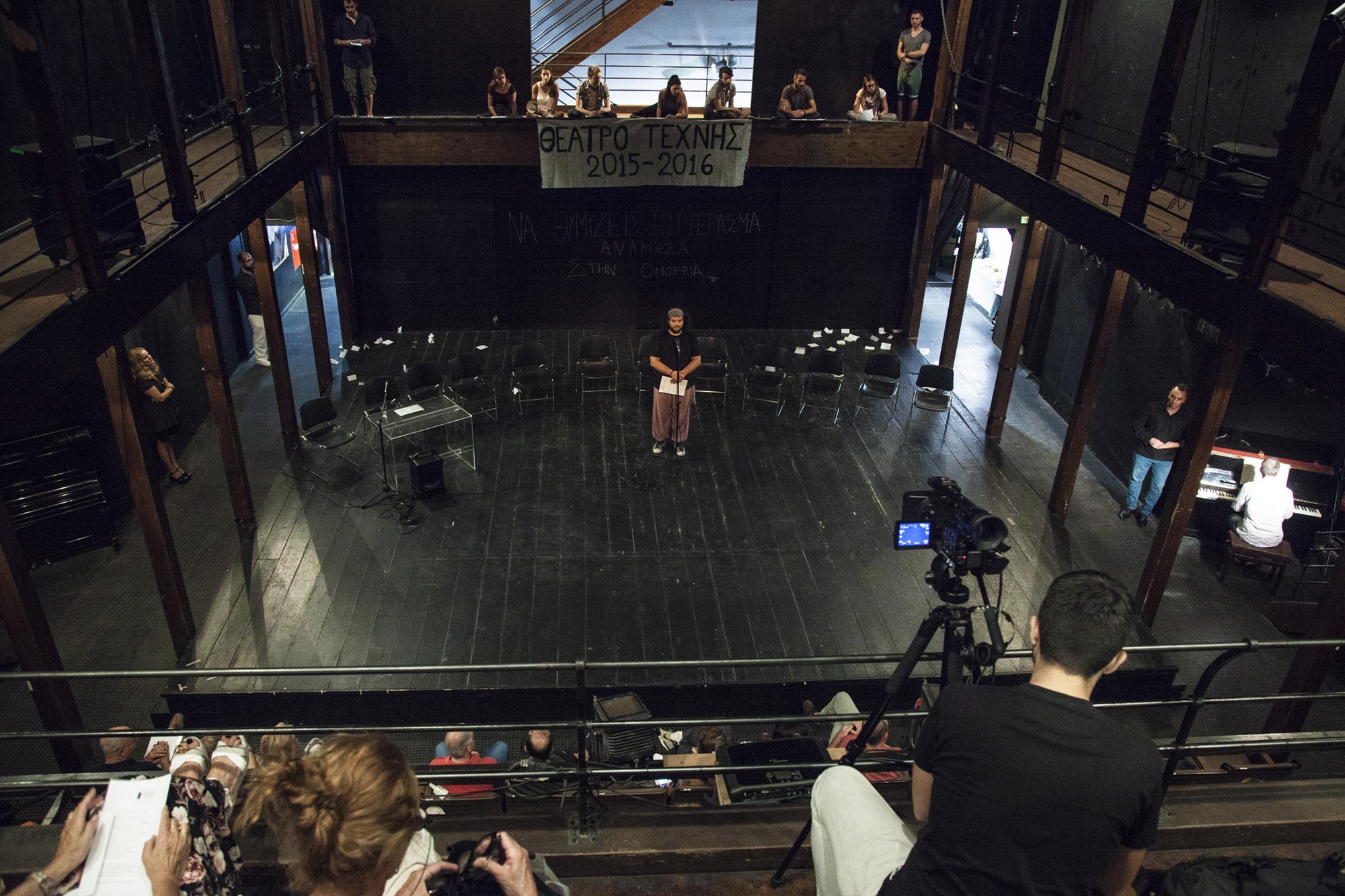 «Το Θέατρο Τέχνης δεν παίρνει καμία οικονομική επιχορήγηση από κανένα. Ο,τι κάνουμε το κάνουμε χάρη στο πάθος, την επιμονή, την απόλυτη πίστη ότι αυτό πρέπει να κάνουμε. Αλλά ο πολιτισμός θέλει χρήματα. Θέλουμε να πούμε πράγματα, να δημιουργήσουμε, αλλά πρέπει και να ζήσουμε. Χρειαζόμαστε στήριξη, την στήριξή σας, με οποιοδήποτε ποσό», μας είπε, ταρακουνώντας μας, η Μαριάννα Κάλπαρη, έχοντας πίσω της σαν πολιτικό σύνθημα το νέο μότο του θεάτρου, από την ποιητική συλλογή του Ασλάνογλου Ερείπια της Παλμύρας: Να θυμίζεις το πέρασμα ανάμεσα στην ομορφιά.