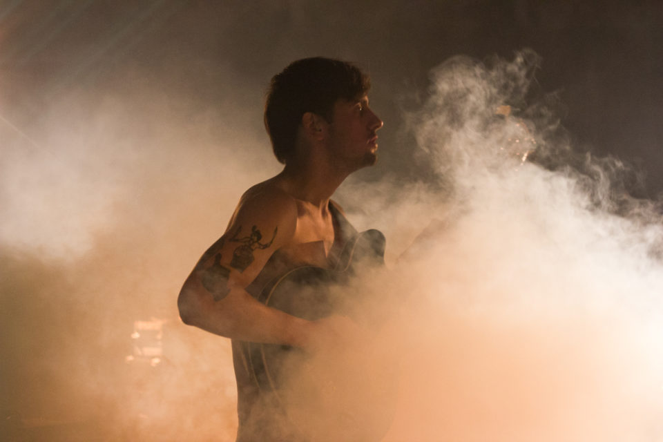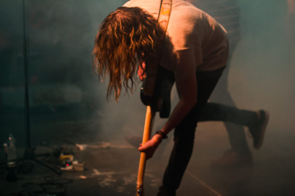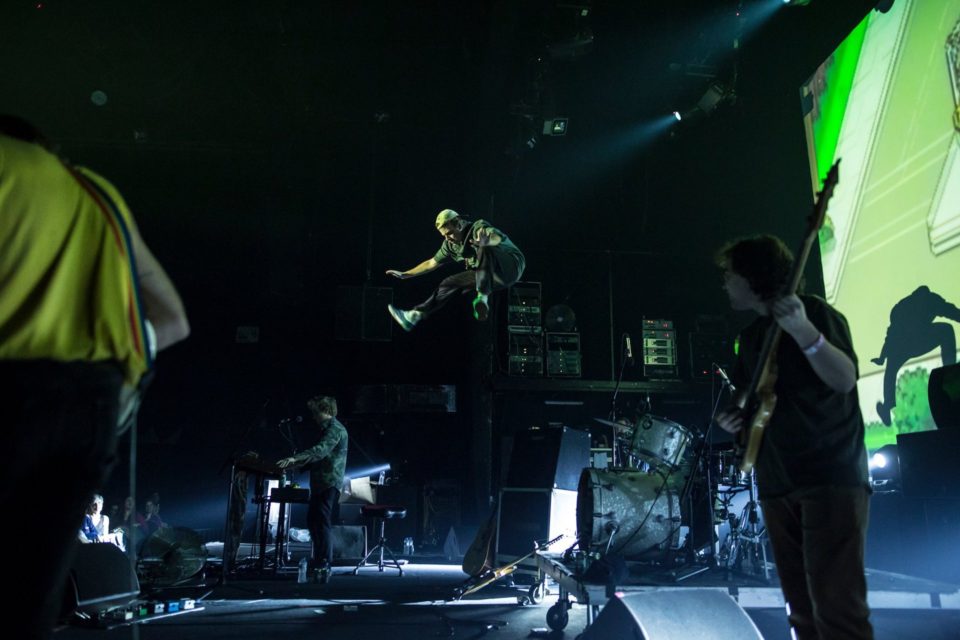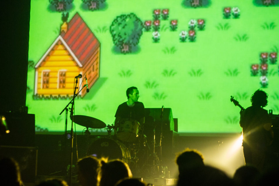 Ο DeMarco «κάνει το μπαμ» επί σκηνής μετά βαΐων και κλάδων, με jockey καπελάκι, φαρδύ πουκάμισο (κάπως δηλαδή σαν τους παίκτες στο 16bit video game βιντεάκι που παίζει καθ’ όλο το live στην γιγαντοοθόνη πίσω από την μπάντα) κι ένα κουτάκι μπύρα στο χέρι που ενίοτε γίνονταν δύο και συνοδεύονταν από ιπτάμενα τσιγάρα που κατέφθαναν στα χέρια του –είπαμε, είναι το παιδί της δίπλα πόρτας και δεν τον νοιάζει που είναι στην σκηνή. Ή τουλάχιστον αυτό θέλει να δείχνει.