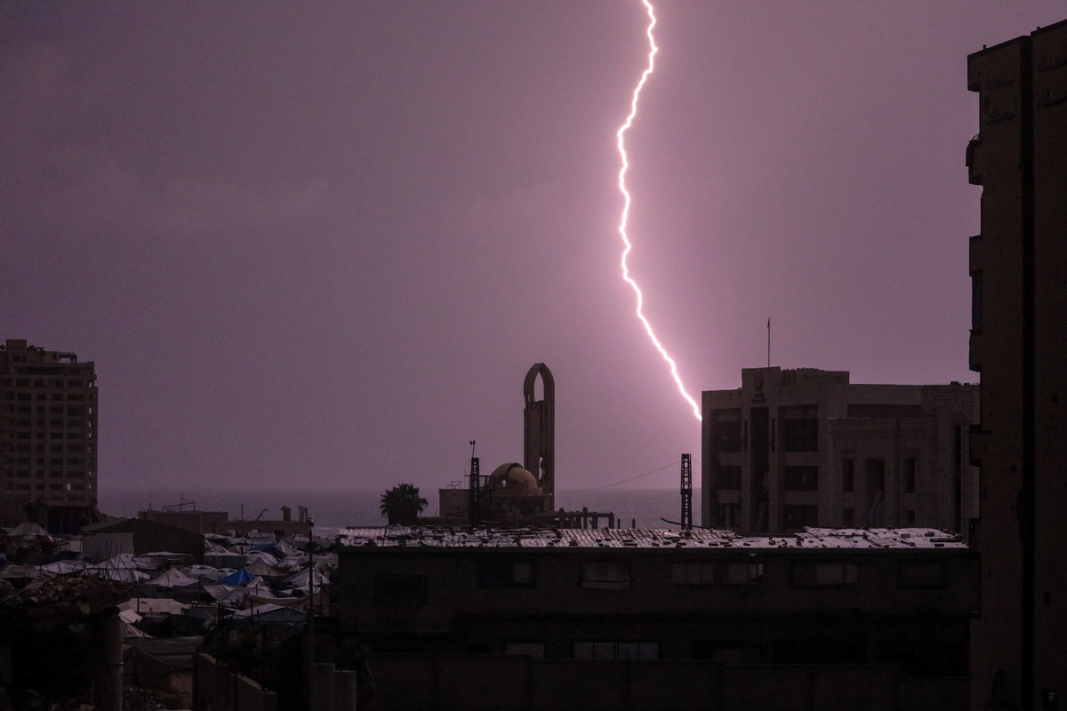 Στη πόλη της Γάζας, μια βροχερή μέρα ξημέρωσε για τους εκτοπισμένους Παλαιστίνιους που επέστρεψαν στα ερείπια των σπιτιών τους, μετά…