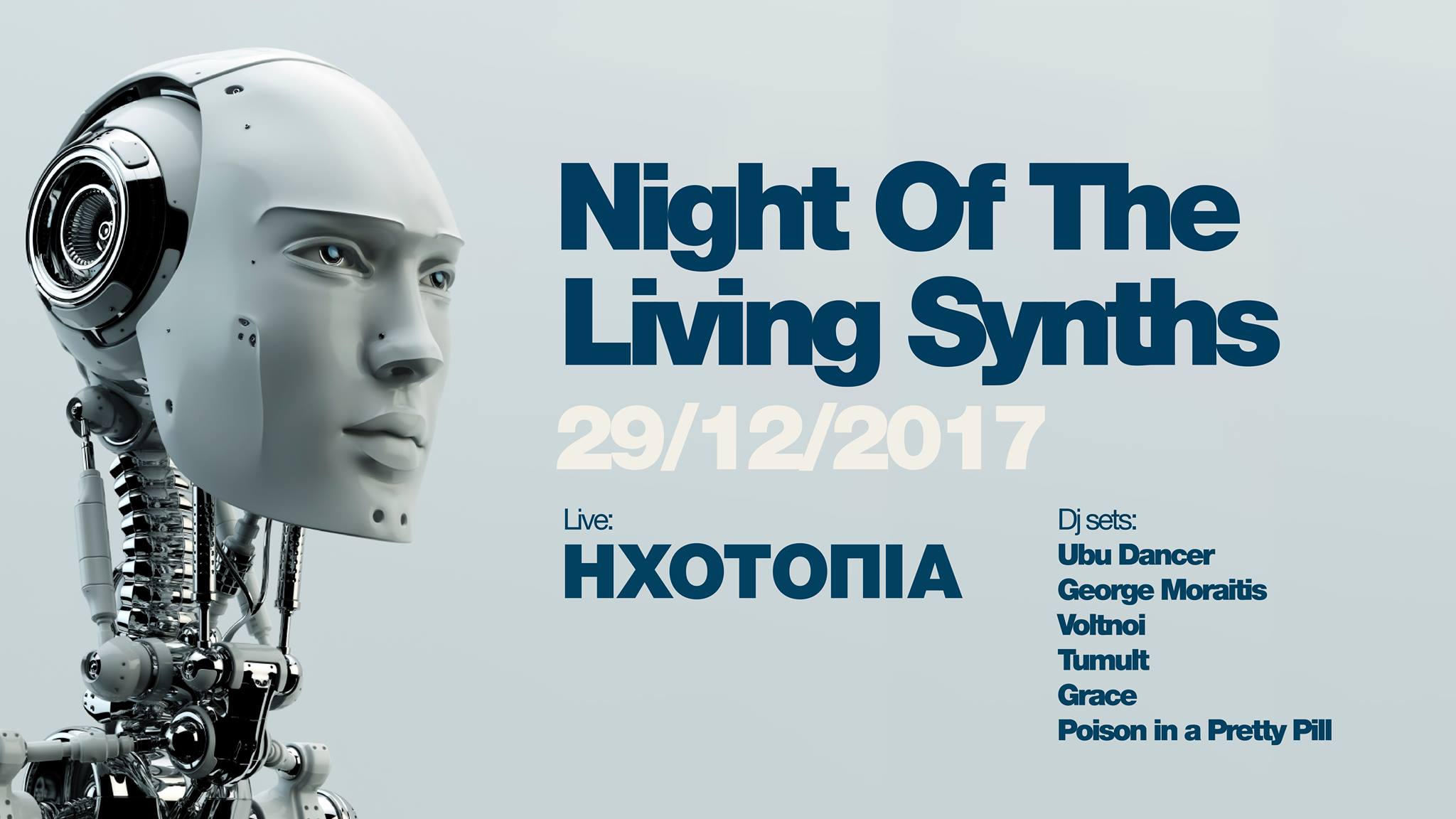 Η ομάδα The Night of the Living Synths παρουσιάζει για πρώτη φορά ζωντανά τα ΗΧΟΤΟΠίΑ σε μια βραδιά γεμάτη από visuals, synthesized / electro music & harsher electronics με 6 Djs.