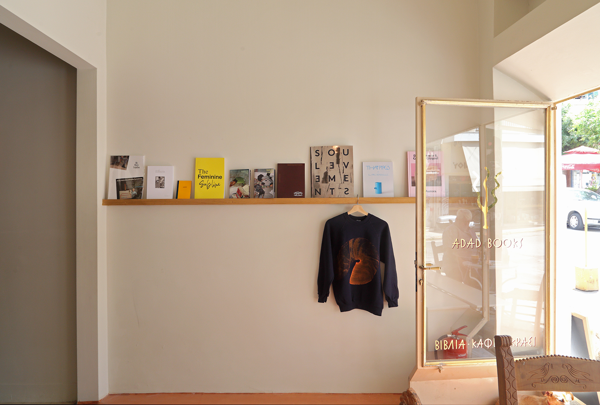 Ποια είναι η φιλοσοφία του βιβλιοπωλείου; Τι εκδόσεις θα βρει κάποιος σε αυτό; Το concept μου ήρθε στο μυαλό καθώς μου έλειπαν τα σπουδαία βιβλιοπωλεία που επισκεπτόμουν συχνά στο Λονδίνο, όπως το Claire de Rouen και το Donlon. Αυτά τα μέρη που πηγαίνει κάποιος για να κοιτάξει τα βιβλία, για να “ρουφήξει” αναφορές από τις visual arts. Επίσης είναι μέρος για να δωρίσεις στον εαυτό σου βιβλία τέχνης για το σπίτι ή για να πάρεις για τα αγαπημένα σου πρόσωπα. Για την επιλογή, μέχρι τώρα δουλεύουμε κυρίως με ανεξάρτητους εκδότες από το Λονδίνο, το Παρίσι και τις Βρυξέλλες και μερικούς ντόπιους που θεωρούμε σπουδαίους όπως η Kyklada, το Desired Landscapes, το Dolce Pub και ο Nomas. Έχουμε επίσης μια μικρή γωνιακή βιβλιοθήκη με βιβλία τέχνης για να διαβάσει κανείς όσο πίνει τον καφέ του. Επίσης στο Adad μπορεί να βρει κανείς μερικές εκδόσεις που μας έχουν δωρίσει και να πάρει ιδέες για δικά του project.