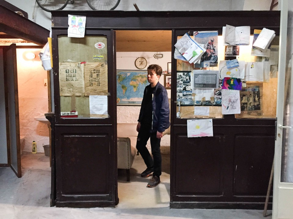 Εικόνα από το video που σκηνοθέτησε ο Μενέλαος Καραμαγγιώλης που συνοδεύει το installation της Μαρίας Παπαδημητρίου. Στο video ο ιδιοκτήτης του καταστήματος κύριος Δημήτρης Ζιώγας διηγείται τη ζωή του.