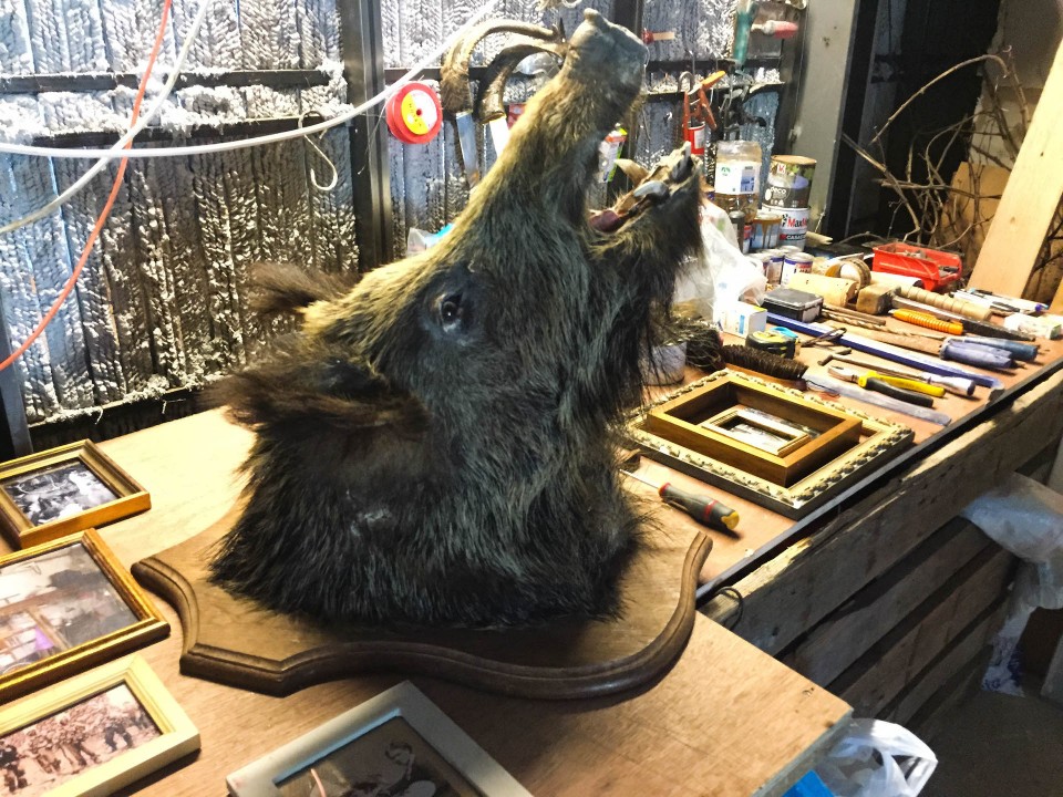 Λεπτομέρεια από την εγκατάσταση της Μαρία Παπαδημητρίου "Why Look at Animals?Αγριμικά", που μεταφέρει στο ελληνικό περίπτερο ένα ολόκληρο παλιό δερματάδικο του Βόλου.