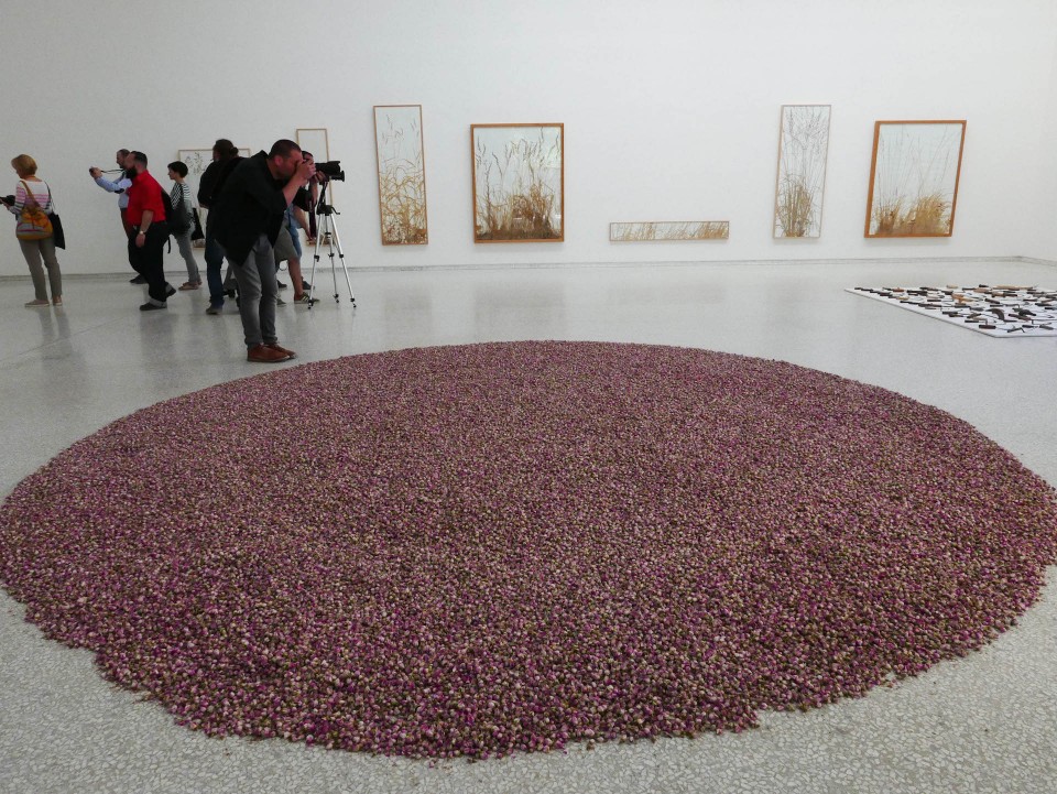 Το Ολλανδικό περίπτερο με τα έργα του σπουδαίου 83χρόνου καλλιτέχνη Herman de Vries. Στη φωτό εκατοντάδες αποξηραμένα τριαντάφυλλα - κάτι που ευωδίαζε όλο τον χώρο.