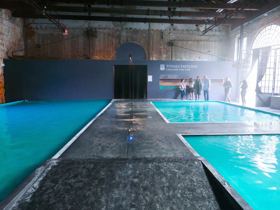 Στο περίπτερο της Tuvalu, μιας νησιωτικής χώρας του Ειρηνικού που κινδυνεύει να εξαφανιστεί λόγω της ανόδου της στάθμης της θάλασσας. Ήταν πολλοί που έμαθαν την ύπαρξή της περνώντας από το περίπτερο της στην Arsenale.