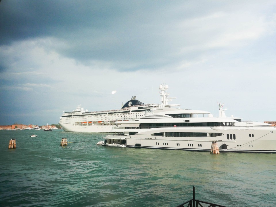 Κρουαζιερόπλοια έξω από το Grand Canal. Καθημερινά φέρνουν στη Βενετία χιλιάδες επισκέπτες. Είναι κάποιες στιγμές - κυρίως οι πρωινές ώρες που το να διασχίσεις τα στενάκια γύρω από την πλατεία του Αγίου Μάρκου είναι σαν να πηγαίνεις ανάποδα από το κοπάδι των σολομών.