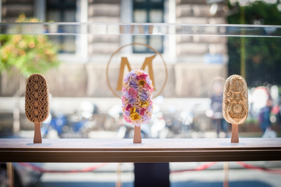 Στην οδό Κολοκοτρώνη λοιπόν, για λίγους μόνο μήνες, θα μπορούν όλοι να αφεθούν στο γλυκό τους ένστικτο που θα τους οδηγήσει σε απρόσμενες δημιουργίες. Η διαδικασία είναι απλή και παιχνιδιάρικη. Ως βάση δίνεται η κλασική πλέον βανίλια του Magic που μπορεί να εμπλουτιστεί με μάξιμουμ τρεις γαρνιτούρες διαφόρων γεύσεων, από αμύγδαλα και brownies μέχρι μάνγκο ή ανθό αλατιού με πιπερόριζα. Μάλιστα, ο chef-pâtissier Ντίνος Φωτεινάκης έχει επιμεληθεί επιπλέον γαρνιτούρες όπως crumble μπισκότου με ελληνικό καφέ και καρύδι. Για έξτρα ευτυχία, έρχεται η σοκολατένια επικάλυψη, κλασική, λευκή ή μαύρη και το απολαυστικό δημιούργημα είναι έτοιμο προς κατανάλωση.