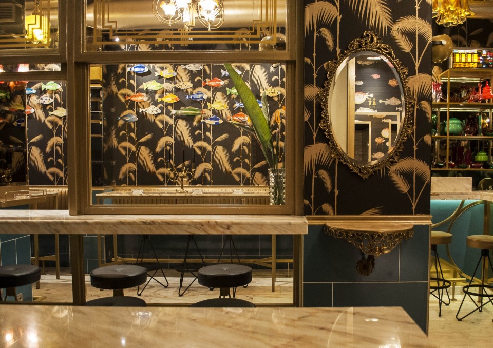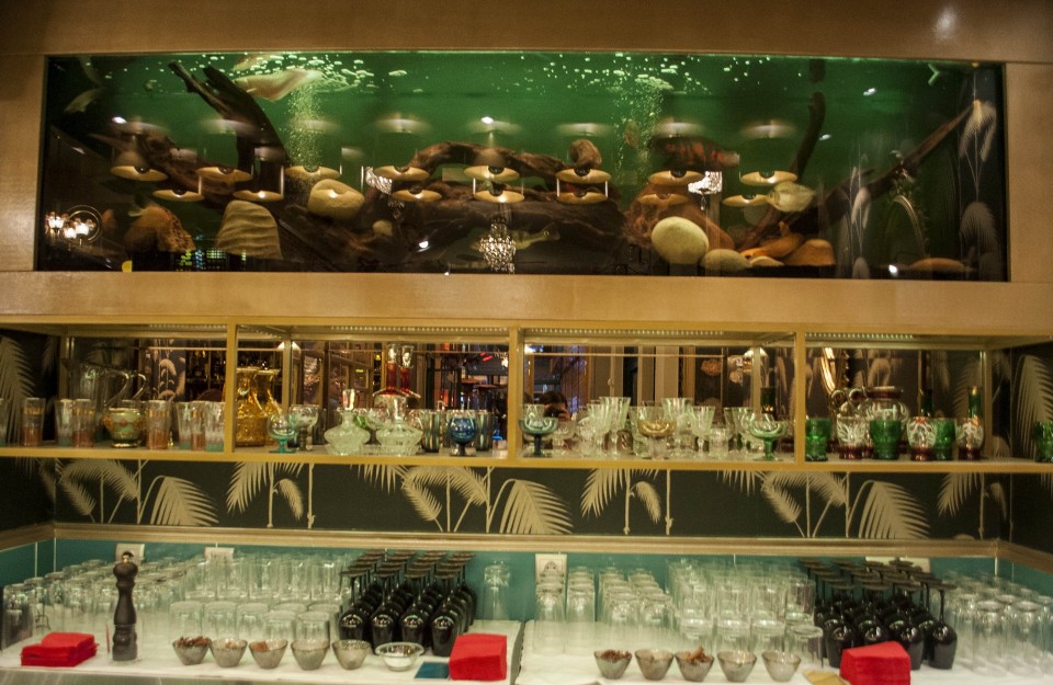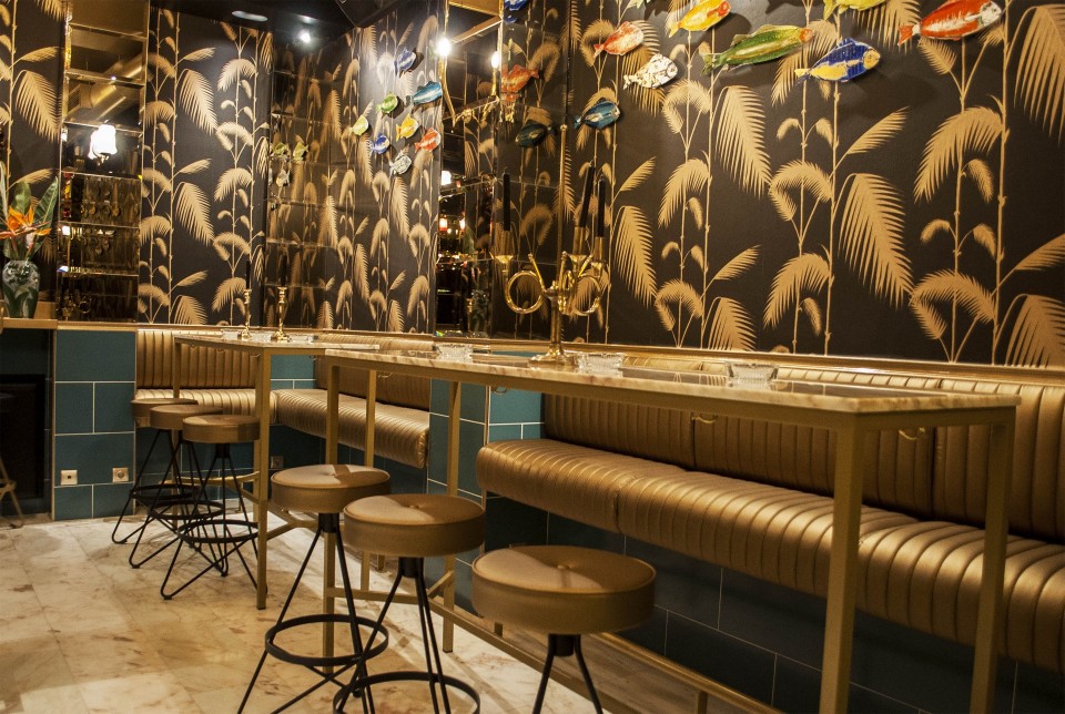 Τον Αλέξανδρο αποκλείεται να μην τον θυμάσαι πίσω από την μπάρα, πιθανόν στο Pere Ubu, στο Absenti ή στο bookAli, στο σίγουρα τα τελευταία 12 χρόνια κάπου θα σου έχει ετοιμάσει εκείνο το cocktail που με την πρώτη ρουφηξιά σε ένα έστειλε σε έναν παράδεισο αλκοόλ και γεύσεων. Οι πολύχρωμες λεπτομέρειες του Rehab σε τόνους του κόκκινου, του πράσινου και του χρυσαφί δημιουργούν μια οπτική πανδαισία που αναστατώνει τις αισθήσεις. Βασικό μοτίβο της διακόσμησης με πλούσιες αναφορές στα 70ς είναι τα ψάρια που κοσμούν τους τοίχους. Νιώθω λίγο σα να βρίσκομαι σε νησί, σε ένα όμως πολυτελές νησί, λίγο κινηματογραφικό, λίγο σαν το νησί που θα επέλεγε να στήσει την έπαυλη του ένας «κακός» του Τζέιμς Μποντ. Mε αυτή την σκέψη κοιτάζω τον κατάλογο για να διαλέξω ποιο από τα 8 signature cocktail θα παραγγείλω πρώτο.