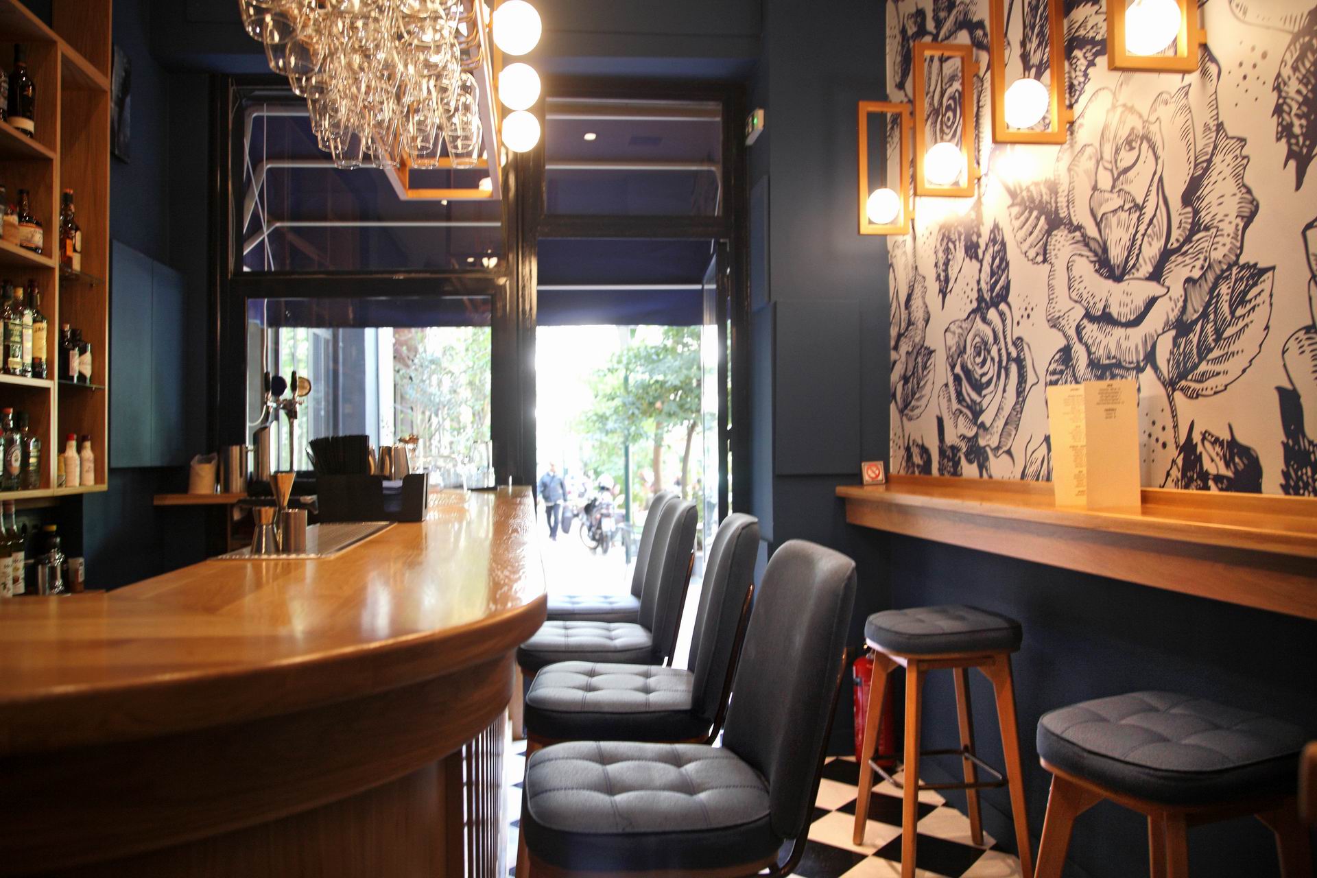 Ο χώρος με τις καλαίσθητες ταπετσαρίες, το σχεδιασμένο στο χέρι πάτωμα, τα ιδιαίτερα φωτιστικά και τα άνετα καθίσματα που κάνουν τον χώρο ακόμα πιο φιλόξενο προκειμένου να απολαμβάνει κανείς την ενιαία ξύλινη μπάρα τους με τις ώρες έχει την υπογραφή του αρχιτεκτονικού γραφείου Architectones 02. Πίσω από την μπάρα του Blue Rose τα ποτά επιμελείται ο Τάκης Φωτιάδης γνωρίζοντας τον τρόπο παρασκευής και την ιστορία κάθε «ψαγμένης» ετικέτας, προτείνοντάς μας το κοκτέιλ που θα ανταποκριθεί στα γούστα μας.