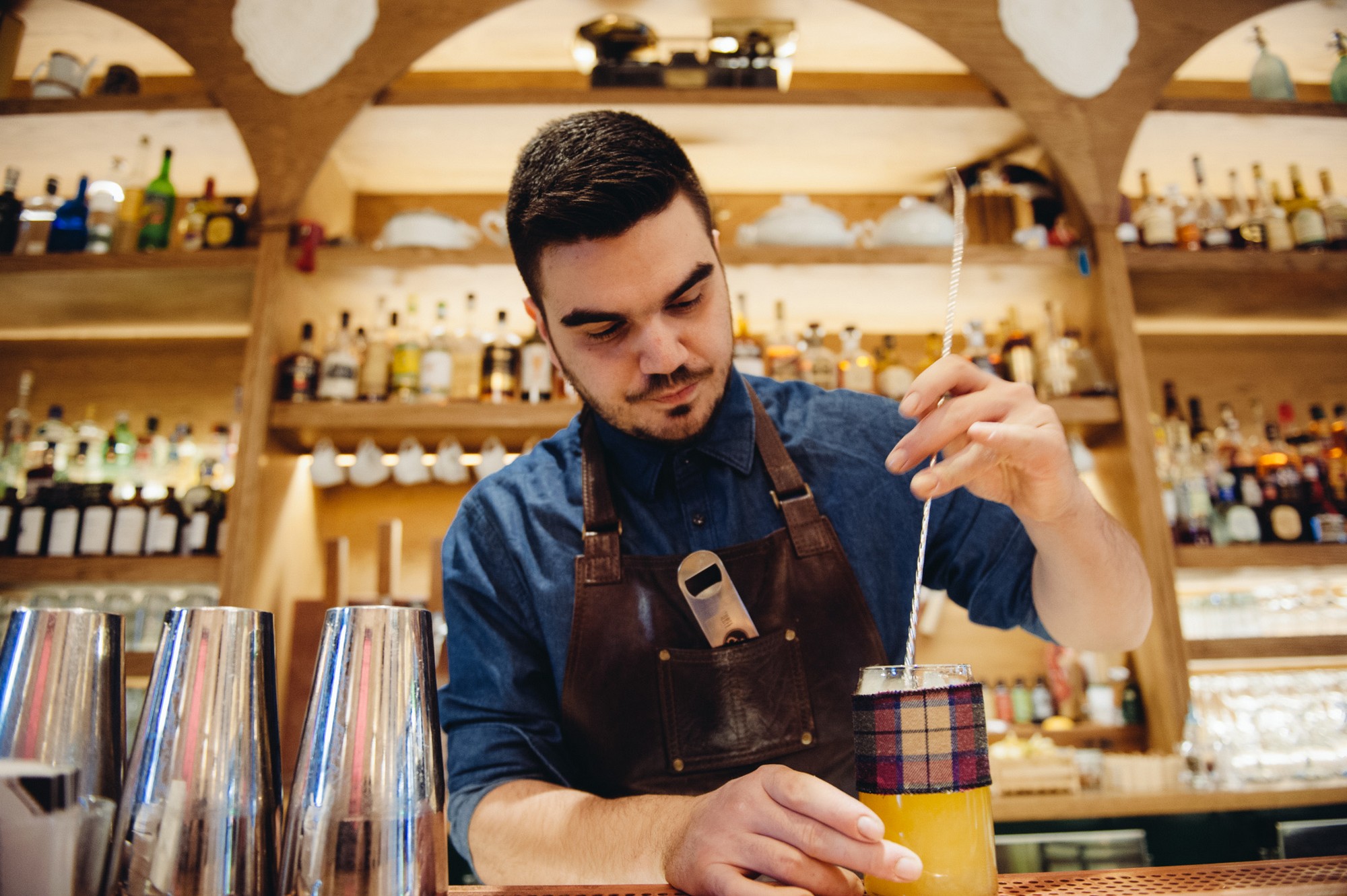 O bartender Βασίλης Κυρίτσης πάνω στη δουλειά.
