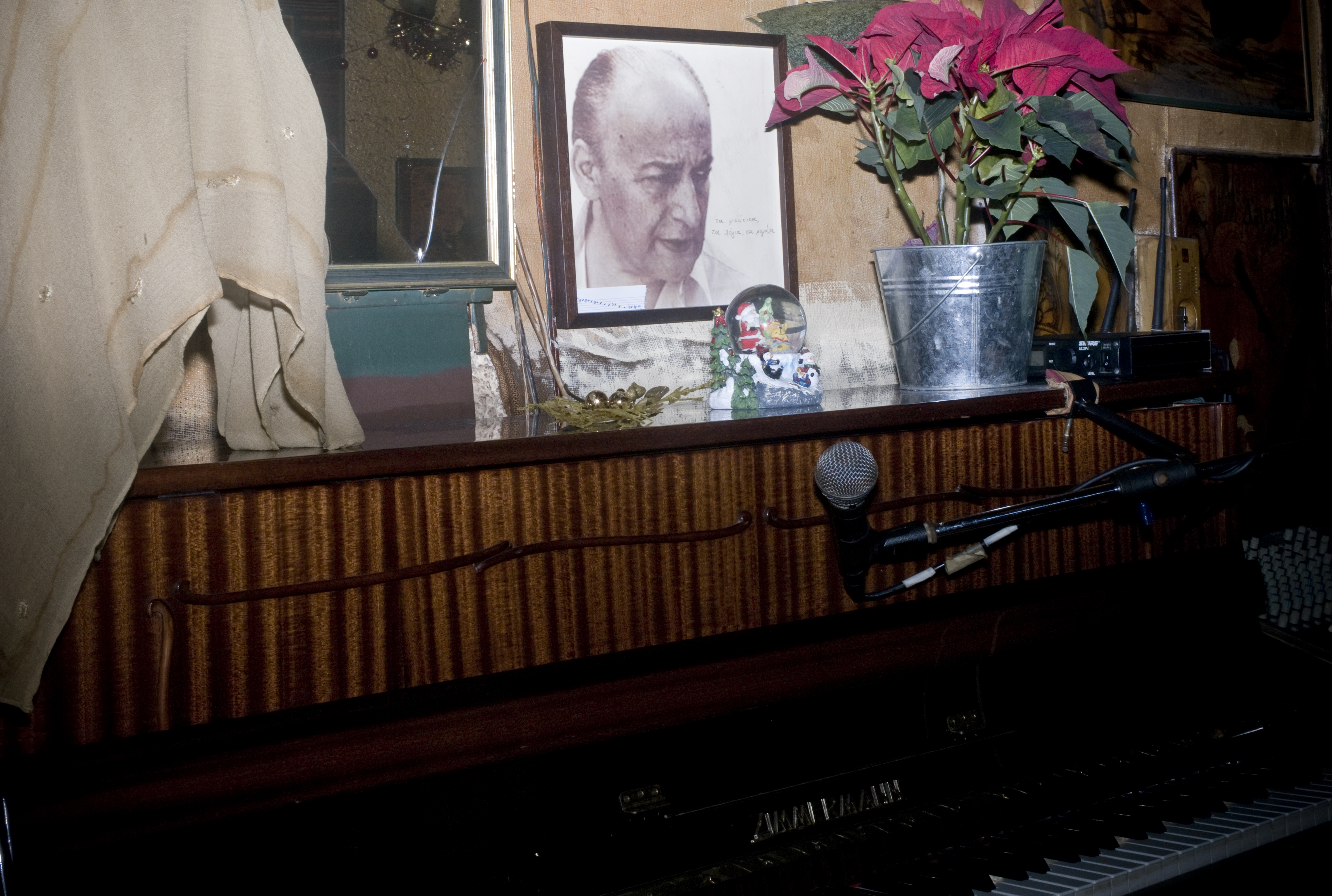 Λίγο πριν ξεκινήσει το live, ανεβαίνω πάλι πάνω και τα τραπέζια έχουν γεμίσει, περίπου 100 άτομα επέλεξαν να διασκεδάσουν απόψε σ’ αυτή τη μπουάτ, τη μόνη που διατηρείται αναλλοίωτη εδώ και πενήντα χρόνια. Με βάζουν να κάτσω τυχαία δίπλα στον Κωνσταντίνο Βήτα, κάτοικο της περιοχής και θαμώνα του μαγαζιού. Σε μια εντελώς αντιεμπορική κίνηση (με δεδομένο το εύρος του κοινού του), το φθινόπωρο του 2012 ο Βήτα επέλεξε να τραγουδήσει εδώ, ενώ στον καλύτερο από τους πρόσφατους δίσκους του, την «Ένωση», έγραψε αρκετά κομμάτια επηρεασμένα από το Νέο Κύμα και τη folk των Simon & Garfunkel. Η βραδιά προχωράει γλυκά, με τον κόσμο να τραγουδάει και να ανταλλάζει αστεία με τους δύο τραγουδιστές. Από τη συρόμενη πόρτα μπαίνει ο Λεωνίδας Μπαλάφας (το μαγαζί είναι τόσο μικρό που όποιος έρχεται γίνεται ορατός σε όλους), ενώ ακούγοντας κλεφτά τον ιδιοκτήτη μαθαίνω πως ο Χάρης Κατσιμίχας έστειλε μήνυμα πως κάτι του έτυχε και δεν θα τα καταφέρει. «Τι γίνεται εδώ ρε παιδιά;» λέω στον εαυτό μου, σαν άλλος Σπύρος Παπαδόπουλος.