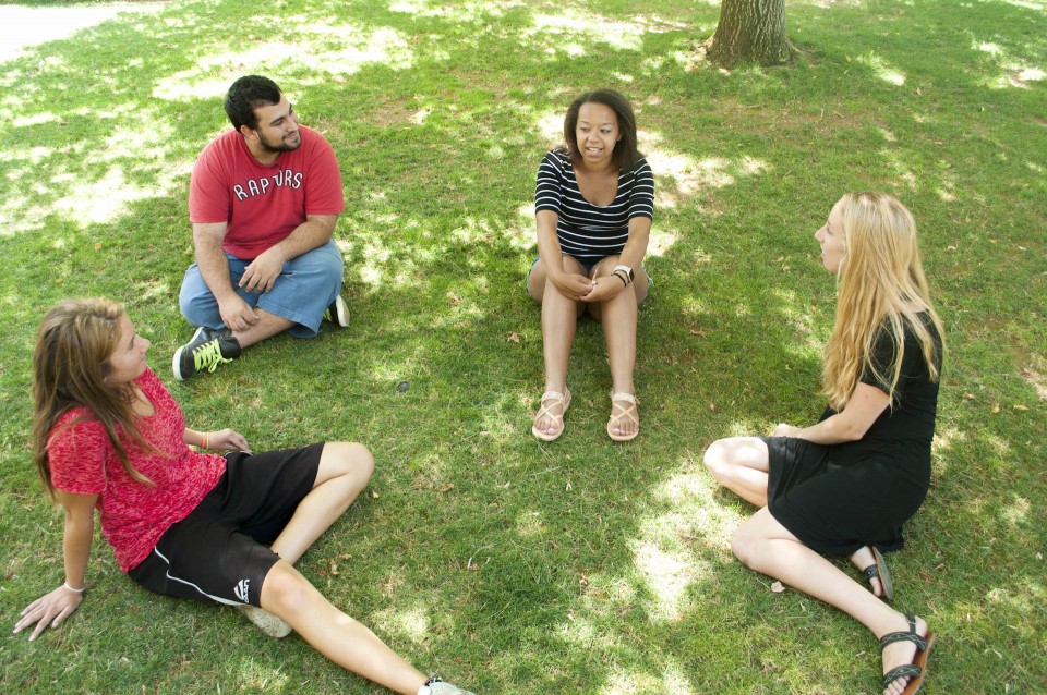 Μεταξύ των μαθημάτων οι σπουδαστές χαλαρώνουν στο γρασίδι