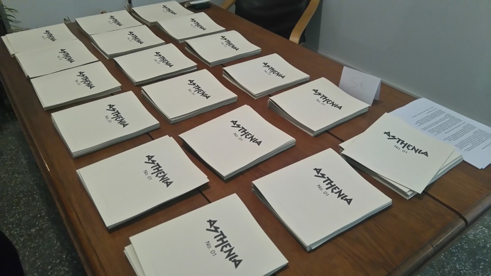 Ένα νέο fanzine, το Asthenia, παρουσιάστηκε την Τρίτη στον υπέροχο χώρο του Vessel στον τρίτο όροφο της στοάς Καΐρη, που μας αποκάλυψε ένα μπαλκόνι με μια τυπικά αθηναϊκή και ιδιαίτερη θέα. Στο πρώτο τεύχος συμμετέχουν πολλοί φίλοι και γνωστοί και τα έργα είναι εμπνευσμένα από μια φράση της Emma Goldman “If I can’t dance to it, it’s not my revolution”, όπου κάθε καλλιτέχνης μπορεί να αντικαταστήσει την λέξη dance, με όποια λέξη τον εκφράζει. Βρήκα τα περισσότερα από αυτά εξαιρετικά και παρατήρησα πως όσο παρωχημένο και αν ακούγεται το «η τέχνη είναι μια μορφή επανάστασης», τελικά είναι η μόνη αδιάκοπη επανάσταση ανά τους αιώνες και είναι προσωπική. Οτιδήποτε πέφτει σαν μικρό πετραδάκι στα λιμνάζοντα νερά της ζωής μας, είναι μια μικρή επανάσταση.