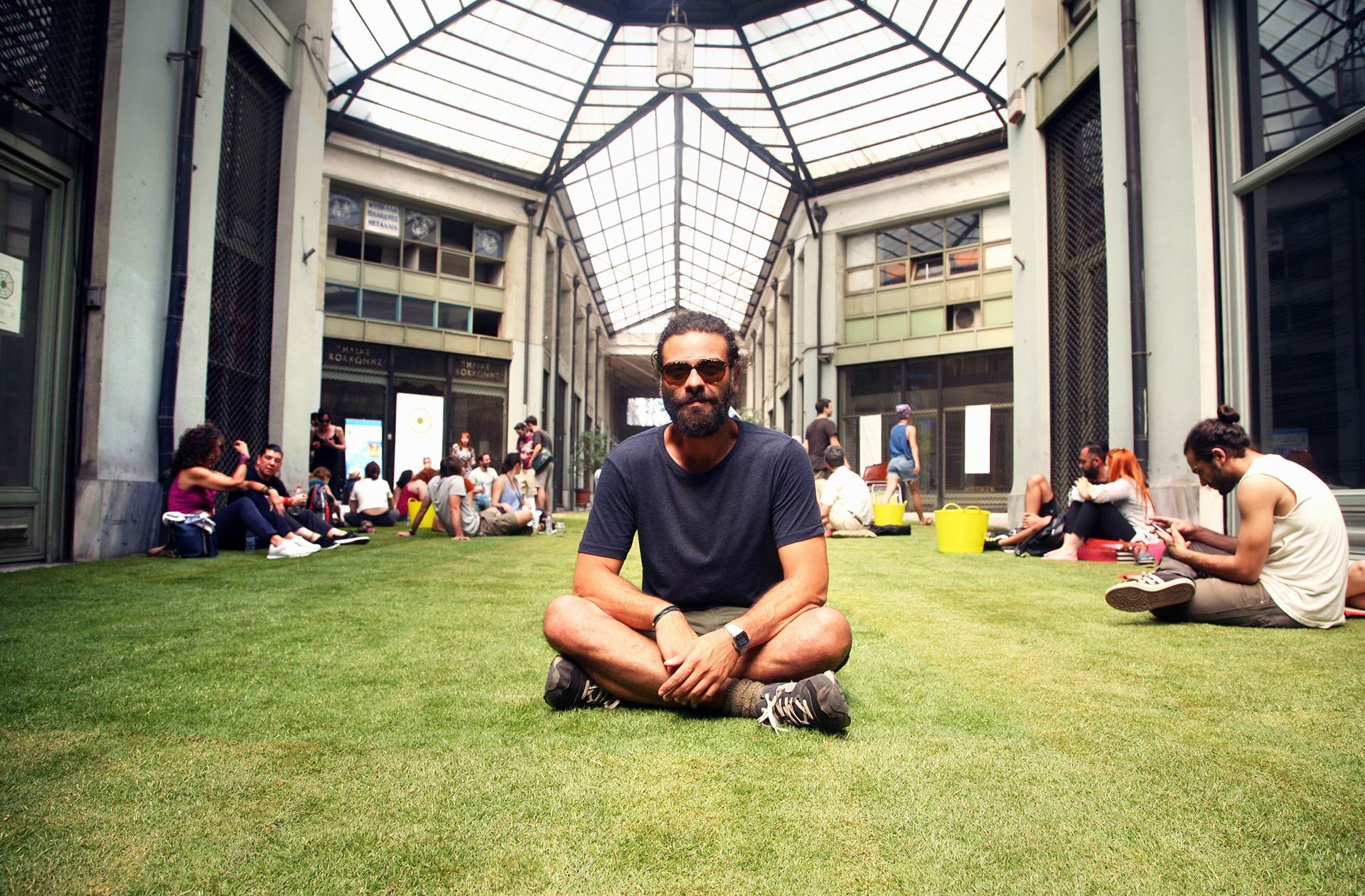 Ο Κωνσταντίνος Ντέλλας έχει συνεργαστεί και πάλι με τη «Μέλισσα» στο πλαίσιο της αγρυπνίας των Χριστουγέννων στο Δημοτικό Θέατρο Πειραιά. «Σκέφτηκα ότι θα μπορούσε μια στοά του κέντρου να γίνει τόπος χαλάρωσης και ηρεμίας, δίπλα από τη βαβούρα του δρόμου. Θα ήταν πιο ενδιαφέρον αν μπορούσε να παραμείνει εδώ το γρασίδι και να πάρει νέο νόημα ο χώρος. Να μην μείνει μόνο στην σημερινή συγκέντρωση», εξηγεί ο Κωνσταντίνος. Η στοά άλλωστε τα τελευταία χρόνια έχει ερημώσει από εμπορική κίνηση καθώς τα μαγαζιά της έχουν κλείσει αλλά εξακολουθεί να είναι πέρασμα.