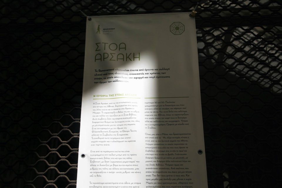 Στο πλαίσιο του Removement λοιπόν ο σκηνοθέτης Κωνσταντίνος Ντέλλας απεύθυνε ένα ανοικτό κάλεσμα στους Αθηναίους. Για πέντε ώρες η Στοά Αρσάκη, αυτή με το περίφημο αίθριο, θα γινόταν ένα μέρος ιδανικό για πικ νικ. Όλοι ήταν καλεσμένοι, η προτροπή ήταν να έρθουν –μόνοι ή με παρέα-, να φέρουν το βιβλίο τους, κολατσιό, επιτραπέζια, ένα μουσικό όργανο αν ήθελαν αλλά κυρίως να έρθουν για να ζήσουν το πιο urban πικ νικ της ζωής τους.