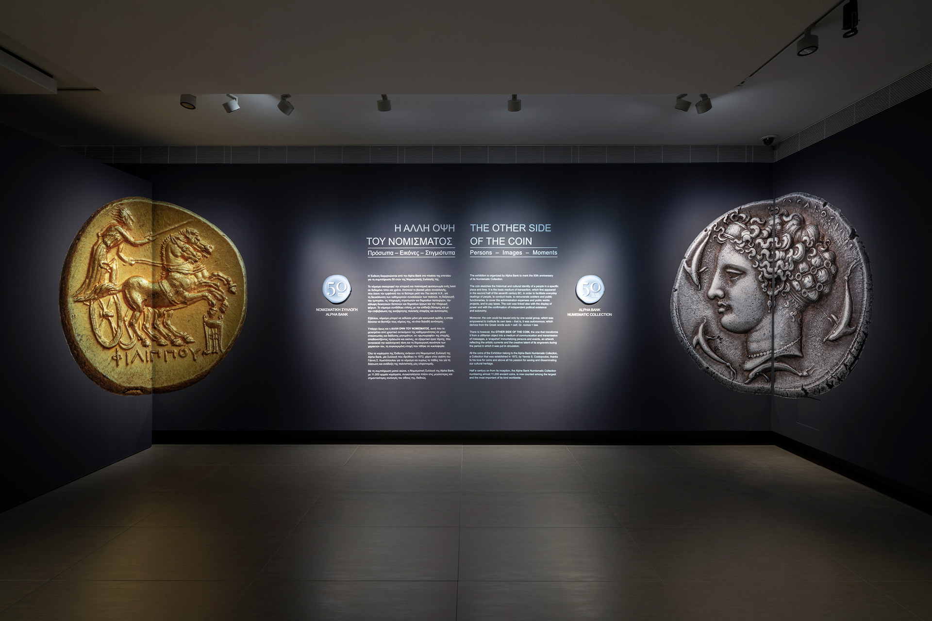 Σε μία ξεχωριστή αίθουσα, μέσα από ένα χρονολόγιο και ένα βίντεο παρουσιάζεται όλη η ιστορία της Συλλογής, που ξεκίνησε το 1972, από τον Γιάννη Σ. Κωστόπουλο, έναν από τους σημαντικότερους τραπεζίτες της Ελλάδας. Η αγάπη του για το νόμισμα και το πάθος του για τη διάσωση του ελληνικού πολιτισμού οδήγησαν στη δημιουργία της Νομισματικής Συλλογής της Alpha Bank, που σήμερα αριθμεί περίπου 11.000 αρχαία νομίσματα και αποτελεί μέρος της παγκόσμιας νομισματικής κληρονομιάς.