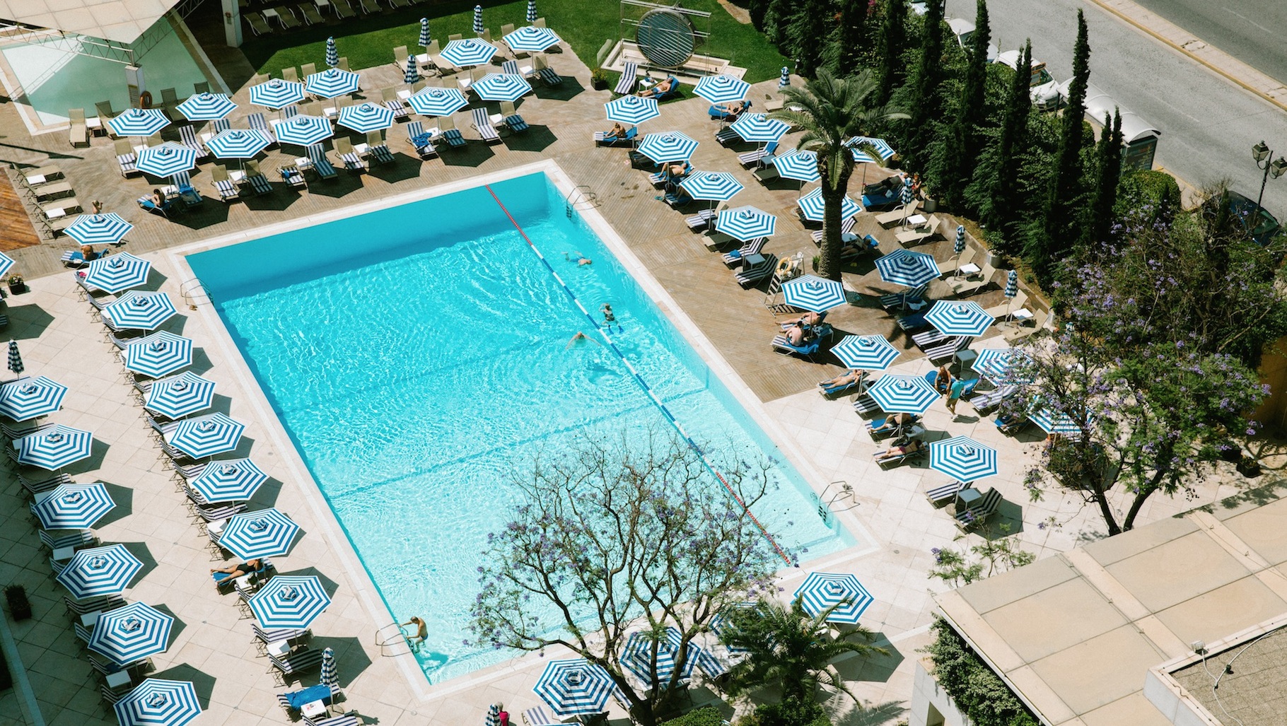 H πισίνα του όλο έντονα χρώματα ξενοδοχείου έρχεται με τη σειρά της να επιβεβαιώσει την δροσερή του επωνυμία.Τα στρώματα που καλύπτουν το ξύλινο pool deck της είναι κατειλημμένα από πολύ μαυρισμένους και νεαράς ηλικίας τουρίστες που αρέσκονται να καταναλώνουν βαρελίσιες μπύρες συνοδευόμενες από πατάτες τσιπς αρωματισμένες με φρέσκο θυμάρι και λάδι τρούφας. Παρότι ο χώρος της θα ήταν περιορισμένος για τις απλωτές του Μάικλ Φέλπς, το ότι βρίσκεται στον πυρήνα του αθηναϊκού κέντρου κάνει πολύ εύκολη την πρόσβαση σε αυτήν και δεν υπάρχει τίποτα πιο ανακουφιστικό από το ότι η αποπνικτική, τους καλοκαιρινούς μήνες, ατμόσφαιρα της οδού Αθηνάς δεν φτάνει ούτε κατά διάνοια στον ένατο όροφο. Λειτουργεί από τις 10:00 π.μ έως τις 7:00 μ.μ και στα 20 ευρώ του εισιτηρίου της περιλαμβάνει έναν καφέ και μια πετσέτα, για να φεύγουν τα πολλά νερά πριν την ηλιοθεραπεία. Fresh hotel, Σοφοκλέους 26, Αθήνα, 2105248511