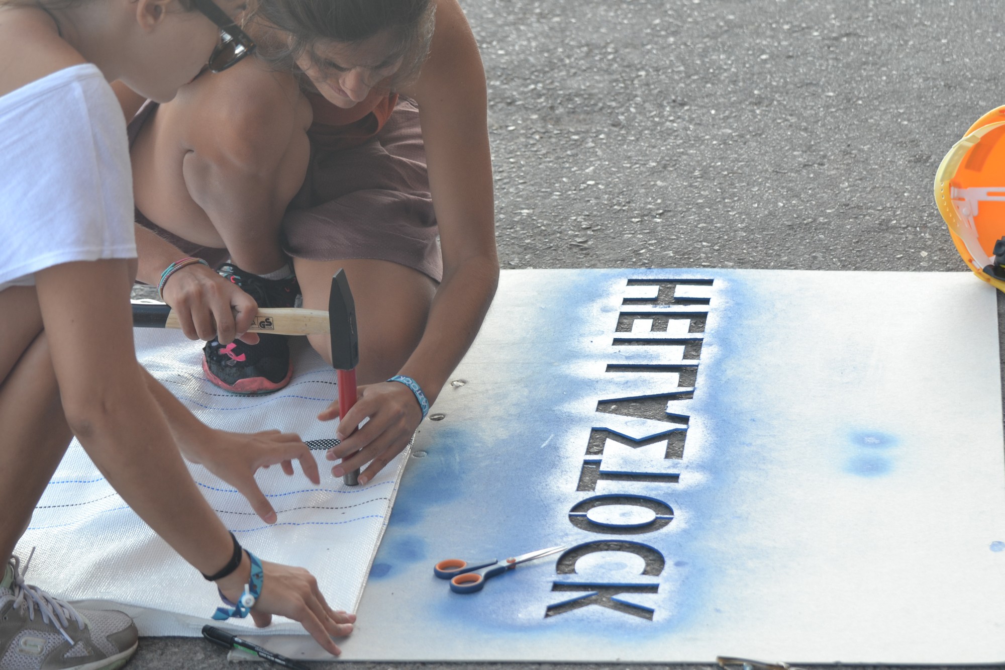 Καλώς ή κακώς κατοικούμε σε μια πόλη διαμορφωμένη από ποικίλες αρχιτεκτονικές γενεές. Σε μια περίοδο λοιπόν που είναι εύλογο να αναρωτηθεί κανείς τι ακριβώς θα κάνουν επαγγελματικά οι απόφοιτοι της σχολής αυτής, εκείνοι απαντούν στήνοντας ένα πρωτότυπο για τα εγχώρια δεδομένα εγχείρημα εξ’ ολοκλήρου στημένο από αυτούς, για αυτούς. Όπως υποστηρίζει ο Θανάσης Μπένος – Πάλμερ, ο ένας εκ των διοργανωτών του Hellastock, αυτή είναι η ευκαιρία τους να ξεφύγουν από την θεωρία και να παίξουν σε κλίμακα ένα προς ένα, όπως αποκαλούν την πράξη στη δική τους κοινότητα. « Με τα υπόλοιπα παιδιά της διοργάνωσης γνωριζόμαστε από την σχολή και για το Bellastock πληροφορηθήκαμε όταν μερικοί από εμάς το είχαν επισκεφτεί το 2011 στη Γαλλία. Στην Ελλάδα δεν έχει ξανασυμβεί κάποιο αντιστοίχου ύφους αρχιτεκτονικό εργαστήριο, ένα πειραματικό ερασιτεχνικό εργαστήριο διοργανωμένο και επανδρωμένο από φοιτητές. Δεν υπάρχει τίποτα καλύτερο από το να δημιουργούν οι φοιτητές ένα εργαστήριο πειραματισμού για τους ίδιους. Η εμπειρία του Bellastock και κατά συνέπεια του εγχώριου Hellastock μοιάζει με αυτή που βιώνεις σε μια κατασκήνωση. Μένουμε όλοι μαζί φτιάχνοντας μια μικρής διάρκειας κοινότητα και πέρα από το ότι χτίζουμε μια εφήμερη πόλη, ζούμε μέσα σε αυτήν. Επίσης, είναι πολύ ευχάριστο το γεγονός ότι ερχόμαστε σε επαφή με συνομήλικους φοιτητές του εξωτερικού και δημιουργείται μια μίξη ανθρώπων με διαφορετικές καταβολές και ιδέες. Αυτό το συνονθύλευμα απόψεων δεν μοιάζει τόσο εντυπωσιακό κατά τη διάρκεια των διαλέξεων, όσο είναι την ώρα που κατασκευάζουμε όλοι μαζί κάτι και οι απόψεις μπλέκονται δίνοντας ένα πολύ ωραίο αποτέλεσμα. Η επιλογή των πρώτων υλών που χρησιμοποιήσαμε για το χτίσιμο της κατασκευής αρμόζει με το πνεύμα του Bellastock: Δημιουργείς μια εφήμερη πόλη με λίγα και απλά υλικά, μέχρι τρία το πολύ. Στην περίπτωση μας η σκαλωσιά, το πανί και το σχοινί ικανοποιούν δύο σενάρια: Το πρώτο σενάριο που εξυπηρετούν τα συγκεκριμένα υλικά είναι το τι θα κάναμε αν έπρεπε να απομακρυνθούμε από το έδαφος. Το δεύτερο είναι το τι θα κάναμε στην περίπτωση που θέλαμε να κατοικήσουμε σε μια πυκνοκατοικημένη πόλη, όπου δεν υπάρχει πλέον χώρος για να χτίσεις. Βάσει των παραπάνω σκέψεων η κατασκευή μας αναπτύσσεται καθ’ ύψος και όχι κατά πλάτος.