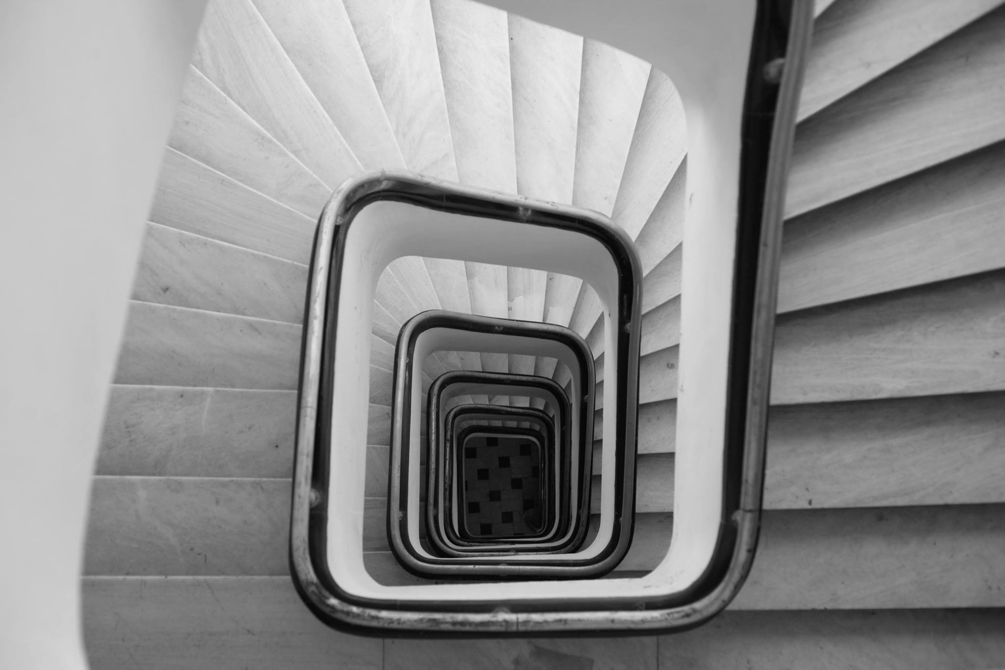Εσωτερική σκάλα στη μπλε πολυκατοικία των Εξαρχείων