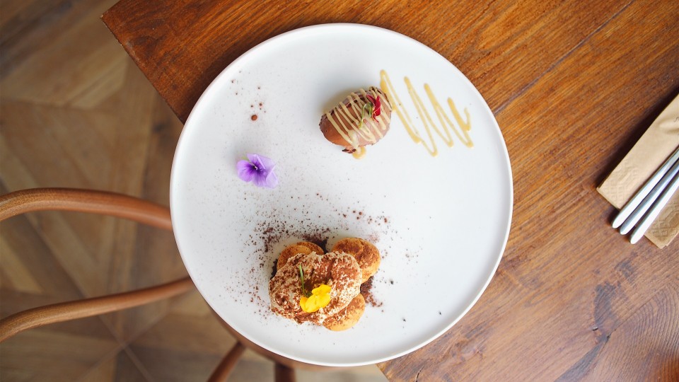 Profiterole Tiramisu (μασκαρπόνε, εσπρέσο, καραμέλα, σοκολάτα 70% κακάο)