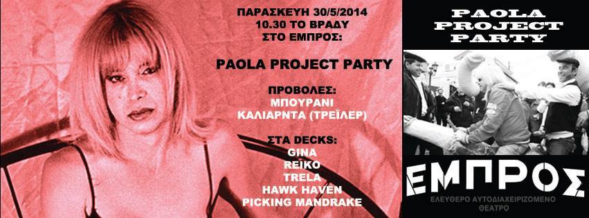 Σε εποχές λοιπόν που η τρανς κοινότητα φαίνεται πως φιμώνεται από όλα τα μέσα, στην Ελλάδα πνέει άνεμος αλλαγής. Έτσι, απόψε το Ελεύθερο Αυτοδιαχειριζόμενο Θέατρο Εμπρός διοργανώνει ένα party, αφιερωμένο στην Πάολα Ρεβενιώτη. Εκδότρια, ποιήτρια, ακτιβίστρια και εκδιδόμενη τρανσέξουαλ, η Πάολα αποτελεί μια από τις πιο εμβληματικές φιγούρες της lgbtq κοινότητας της Ελλάδας, αλλά και όλης της Ευρώπης. Εκθέσεις της έχουν λάβει χώρα από την αθηναϊκή gallery The Breeder, μέχρι το Soho του Λονδίνου, ενώ κατά καιρούς έχει δώσει συνεντεύξεις σε έντυπα όπως το Dazed and Confused και το Candy.