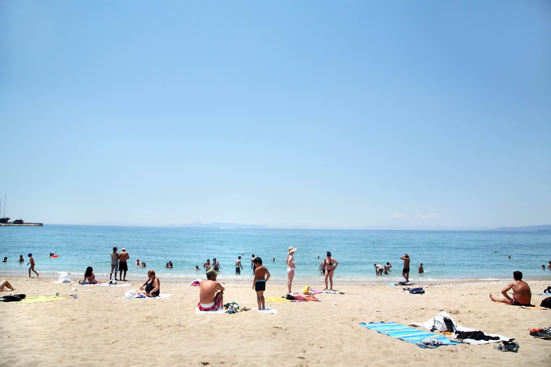 Κατεβαίνοντας σε αυτήν την στάση και περπατώντας λίγα μέτρα προς τα εκεί όπου μυρίζει αλμύρα, φαίνεται η παραλία Γλυφάδας. Ο Δήμος έχει κάνει πολύ καλή δουλειά. Εκτός από τα δέντρα που έχει φυτέψει και τα προστατεύει με προειδοποιητικές πινακίδες, οι ομπρέλες είναι έτσι τοποθετημένες ώστε να δίνουν ευρυχωρία αλλά και μια αίσθηση γεωμετρίας στην παραλία.