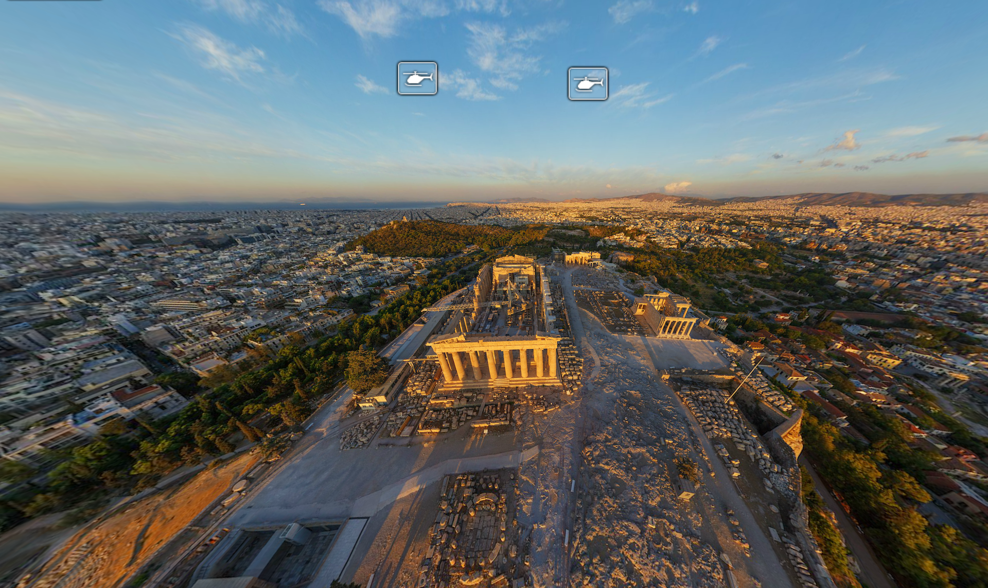 Φυσικά, σε αυτή την εφαρμογή περιλαμβάνονται πλήκτρα με τα οποία ο χρήστης μπορεί να κάνει ζουμ ή να σταματήσει πάνω σε κάποιο σημείο που παρουσιάζει ενδιαφέρον, αλλά και χρήσιμες πληροφορίες για τη χρήση του προγράμματος και για την ιστορία της Ακρόπολης.