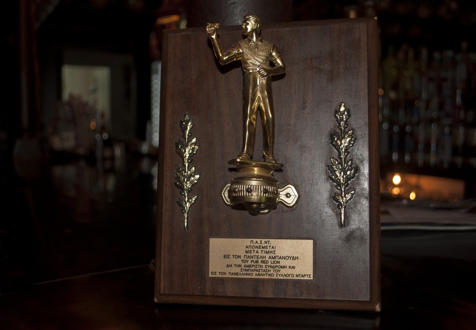 Ναι, αυτή είναι η Red Lion. Μια κάψουλα γεμάτη με ανάσες ανθρώπων που ο κ. Παντελής τη διατηρεί ανέπαφη και ασφαλή χάρη στη φροντίδα του. «Είναι δύσκολη η εποχή αλλά συνειδητά το κρατάω το μαγαζί με την συγκεκριμένη ταυτότητα. Άλλος στη θέση μου θα είχε κάνει 15 ανακαινίσεις και θα είχε πλουτίσει. Αλλά εγώ είμαι οπαδός της παροιμίας “Τι τα θες τα χρήματα αφού υπάρχουν μνήματα;”. Βέβαια χαίρομαι που έρχεται αρκετός νέος κόσμος. Εδώ συνυπάρχουν οι 18άρηδες με τους 60άρηδες. Εδώ έρχονται παιδιά παλιών θαμώνων και πίνουν το ποτό τους. Τις προάλλες μπήκε εδώ μέσα μια κοπελίτσα και ήρθε και με φίλησε στο μάγουλο. Παρεξηγήθηκε κάπως ο γιος μου και του λέω “Ξέρεις τι μου είπε η κοπέλα; Αν θυμάμαι την γιαγιά της, που ήταν το κορίτσι μου πριν από 40 χρόνια”. Αυτό έχει μεγάλη συναισθηματική αξία για εμένα. Ή αυτό το τηλέφωνο που έχω στο μαγαζί είναι Siemens του 1965. Πόσοι έχουν κλάψει πάνω σε αυτό το ακουστικό για γκομενοδουλειές. Ξέρεις τι είναι να έρχεται εδώ ο άλλος καψούρης για να την πάρει ένα τηλέφωνο γιατί άλλωστε πόσοι είχαν τηλέφωνο σπίτι τους το 1973. Να δες εδώ. Έχω κρεμάσει αυτή την χειροτεχνία. Είναι εκεί από το 1982. Μου την έφερε η Σοφία, ήταν νηπιαγωγός. Για 4-5 ήταν άνεργη, περίμενε τον διορισμό της, ερχόταν εδώ και μου έλεγε τον πόνο της, έπινε το ποτό της, σχεδόν έκλαιγε μέσα στην απελπισία της κι εγώ προσπαθούσα να της συμπαρασταθώ της γυναίκας. Κάποια στιγμή διορίστηκε και ύστερα 4-5 χρόνια ήρθε και μου έφερε αυτή τη χειροτεχνία από το νηπιαγωγείο κι εκεί την έχω αφήσει τόσα χρόνια. Εγώ μιλάω με τα αναμνηστικά που μου έχουν φέρει οι πελάτες και είναι σαν να μιλάω μαζί τους. Εδώ μέσα είναι το σπίτι μου. Ο εαυτός μου είναι η Red Lion και η Red Lion είναι ο εαυτός μου».