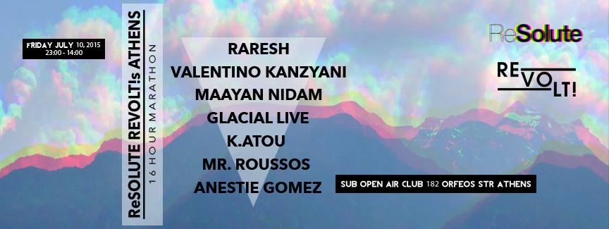 Η αθηναϊκή Revolt! σε συνεργασία με την νεοϋορκέζικη ReSolute, με πολύχρονη εμπειρία στο χώρο και πολλά επιτυχημένα events στο ενεργητικό τους, ενώνουν τις δυνάμεις τους κάτω από την ίδια φιλοσοφία απαντώντας στις απαιτήσεις του κοινού με 1 stage, 8 καλλιτέχνες και 16 ώρες ποιοτικής μουσικής στο Zaros Warehouse Open Air.