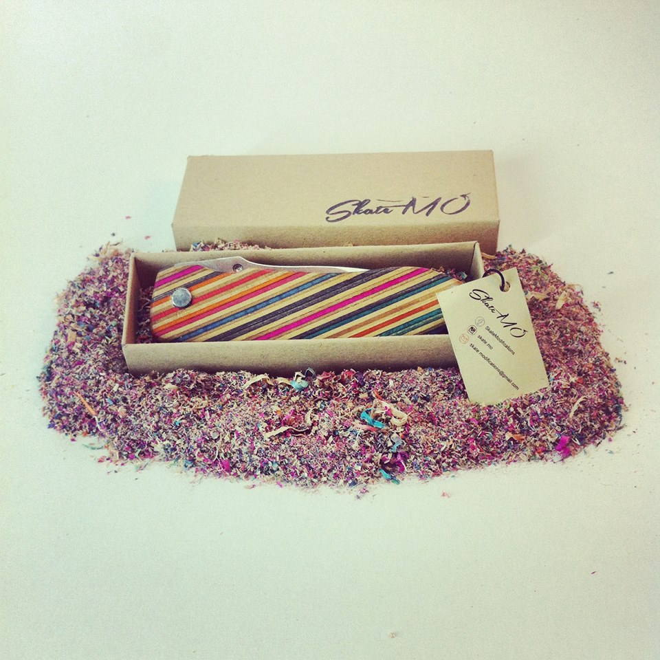 O Νίκος Δενδρινός είναι 27 χρονών και είναι εδώ και χρόνια skater. Μόλις έξι μήνες πριν, είχε την έξυπνη και πρωτότυπη ιδέα να διακοσμήσει το σπίτι του, χρησιμοποιώντας τις παλιές, μεταχειρισμένες σανίδες skateboard, σαν ράφια στους τοίχους. Η έμπνευσή του όμως δεν έμεινε στο ράφι. Σύντομα ανακάλυψε νέους καλλιτέχνες, δημιούργησε το δικό του εργαστήριο, αγόρασε τα απαραίτητα μηχανήματα και εργαλεία, βρήκε όσες περισσότερες χρησιμοποιημένες, κατεστραμμένες σανίδες μπορούσε από φίλους skaters και στρώθηκε στη δουλειά. Το αποτέλεσμα ήταν εκπληκτικό! Από κοσμήματα, μπρελόκ και πίπες μέχρι θήκες κινητών, μαχαίρια, τασάκια και κάδρα για φωτογραφίες. Χρήσιμα αντικείμενα, έξυπνα gadgets, πολύχρωμα σχέδια. Ονόμασε το brand του skate MΟ και έδωσε ζωντάνια, χρώμα και χρησιμότητα στο φθαρμένο ξύλο.