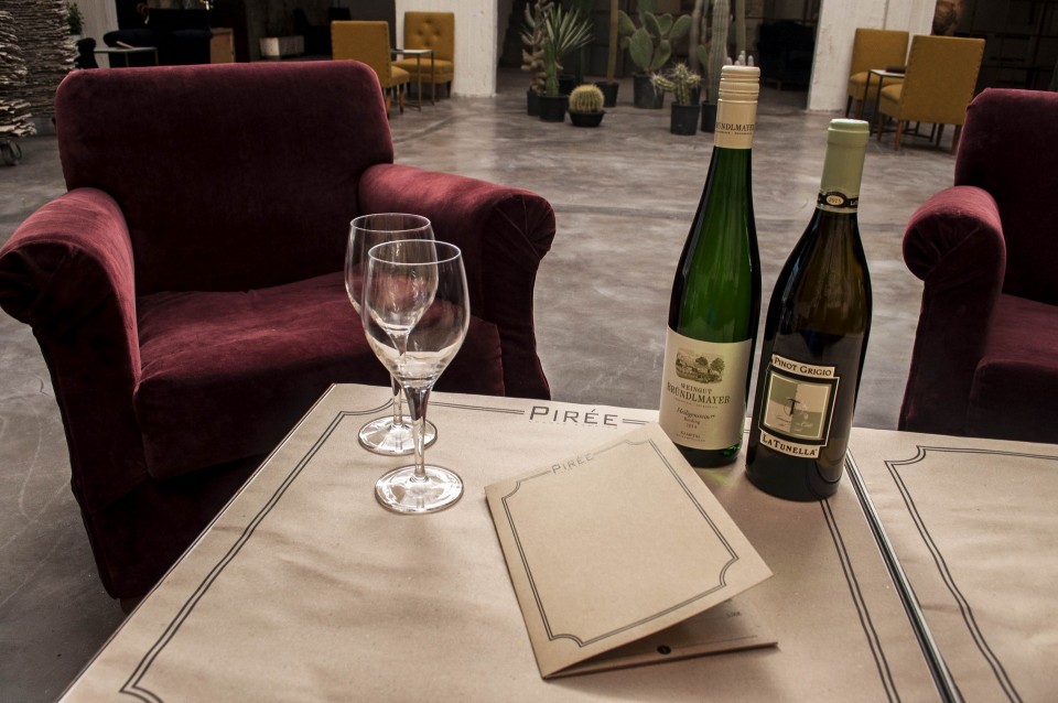 Γιατί το Pirée δεν είναι μια γκαλερί αλλά είναι και café-bar με finger food κουζίνα. Λειτουργεί μέχρι τις 23:00 το βράδυ, τη μουσική επιμελείται ο Ηλίας Φραγκούλης, ο οποίος έχει ήδη προγραμματίσει να πραγματοποιηθούν κάποιες πολύ ιδιαίτερες προβολές, και η λογική του είναι να σερβίρει κατά κύριο λόγο premium ετικέτες. Από νωρίς βέβαια μπορεί κάποιος να απολαύσει έναν απολαυστικό χυμό όπως το Beet Boost Verve με πορτοκάλι, μήλο, καρότο, παντζάρι, σέλερυ, τζίντζερ, κουρκουμά (4,50 €) και πιο αργά ένα εκλεκτό cocktail όπως το Alexander με gin, crème de cacao και κρέμα γάλακτος (9,00 €) ή το Sazerac με cognac, Peychaud ‘s Bitters, κύβο ζάχαρης και αρωματισμό με αψέντι (13,00 €). Το Pirée διαθέτει ακόμη μια πλούσια, ενημερωμένη κάβα κρασιών και επιλογές σε κρύα πιάτα όπως σαλάτες κι ένα μεσογειακό plateau με λόμο, σοσίνα, τσορίτο, jamon με flakes τρούφας, παρμεζάνα παλαιωμένη, μπρι και γραβιέρα με θυμάρι (12,50 €/25,00 €).