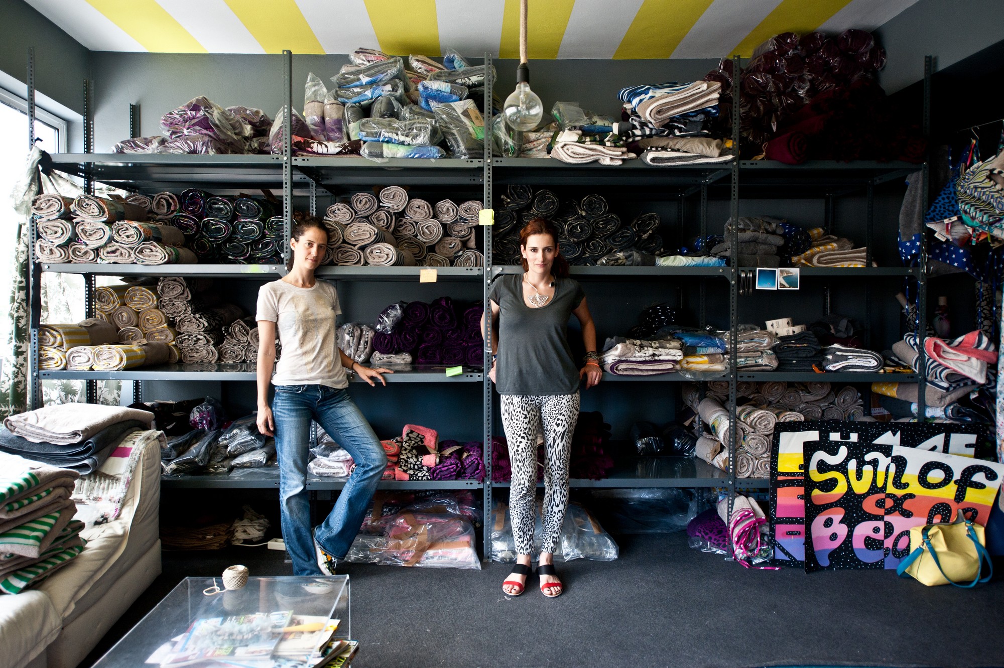 Η Έλλη Ρούντου, από την άλλη πλευρά, έχει σπουδάσει marketing στην Αγγλία, αλλά το marketing δεν ήταν αρκετά δημιουργικό για να την καλύψει κι έτσι αποφάσισε – και τα κατάφερε – να εργαστεί ως στυλίστρια στο περιοδικό Elle, προτού ξεκινήσει τη συνεργασία της με τη Μελίνα. «Εμείς απλώς είδαμε ότι υπάρχει ένα σοβαρό κενό στην αγορά του beachwear. Οι περισσότεροι αγοράζουμε τις πετσέτες από καταστήματα ρούχων, αξεσουάρ ή λευκών ειδών. Βλέπετε πως όλοι ασχολούνται με το μαγιουδάκι, με το καπελάκι, με τα σανδαλάκια, αλλά οι πετσέτες είναι δεκαετίας». Το Sun of a Beach είναι το πρώτο e-shop που έβγαλε την πετσέτα θαλάσσης από τη σφαίρα των λευκών ειδών και την αναβάθμισε, μετατρέποντάς τη σε μπουτικοειδές αξεσουάρ και μετακινώντας τη στη σφαίρα της μόδας. Η πετσέτα έχει και αυτή την τιμητική της. Άλλωστε, όπως πολύ σωστά παρατήρησαν τα κορίτσια, περνάμε τόσες ώρες επάνω σε μια πετσέτα θαλάσσης, άρα γιατί να μη σκεφτούμε την ποιότητά της;
