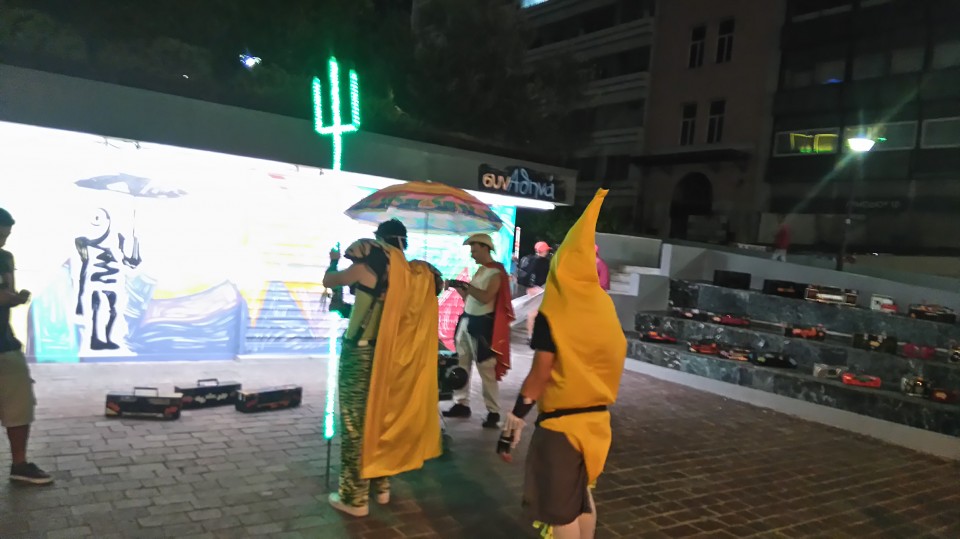 Η αποτυχία ενός πάρτι είναι ο μεγαλύτερος του θρίαμβος. Την περασμένη Παρασκευή ήρθε στην Αθήνα το “Tom and Gary’s Decentralized Dance Party” , ένα street mobile party που οργανώνουν δύο παλικάρια από το Βανκούβερ του Καναδά και κατά το οποίο προσκάλεσαν τους Αθηναίους να φορτώσουν ένα boombox στον ώμο και να μεταδώσουν την ενέργεια του πάρτι σαν ιό σε όλη την πόλη. Φιλόδοξο το εγχείρημα. Βλέπετε, τα μπαρ της πόλης μας είναι πάντα γεμάτα, στα club ο κόσμος χορεύει ακόμα και τα ρακάδικα είναι πεισματικά επικοισμένα από φοιτητόκοσμο. Όμως street party με boombox; To meeting place είναι η πλατεία ακριβώς απέναντι από τη Βαρβάκειο, στα σκαλιά της οποίας στήνονται σε παράταξη τα boombox και η ομάδα του DDP ντυμένη με εμφάνταστα αυτοσχέδια κοστούμια. Η ώρα είναι 8 και μισή. Φωτογράφοι από διάφορα μέσα φωτογραφίζουν τα μέλη του party που είναι για την ώρα μόνα τους. Περαστικοί κοντοστέκονται και φωτογραφίζουν τα boombox, αλλά μετά φεύγουν. Κάνουν χάζι τη φάση, αλλά ντρέπονται να συμμετάσχουν. Σπάνια η πόλη μας εγκαταλείπει τη σοβαροφάνειά της ή τέλος πάντων για να το κάνει πρέπει να την ποτίσεις με αρκετό αλκοόλ. Τελικά το πάρτι ξεκινάει πιο αργά από το αναμενόμενο και φτάνει στην Πλατεία Συντάγματος έχοντας προσελκύσει κάποιο κόσμο, αλλά όχι αρκετό για να γίνει «χαμός». Κάποιοι τολμηροί βούτηξαν με τα εσώρουχα στο σιντριβάνι.