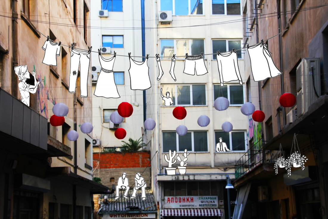 Γιατί επέλεξες τη συγκεκριμένη οδό; Η συγκεκριμένη οδός έχει ένα καλά κρυμμένο μυστικό. Παρόλο που τόσα χρόνια πέρασε στη συνείδηση του κόσμου ως ένας δημόσιος δρόμος σαν όλους τους άλλους, πρόκειται για ένα κομμάτι ιδιωτικού οικοπέδου που ενώ σχεδιάστηκε να γίνει στοά, δεν έγινε ποτέ. Στο συγκεκριμένο δρόμο, λοιπόν, συνυπάρχει το δημόσιο και το ιδιωτικό, με έναν τρόπο «αρμονικό», καθώς φαίνεται να μην ενοχλεί τους ανθρώπους που ζουν και εργάζονται σε αυτόν. Η συνύπαρξη του ιδιωτικού και του δημόσιου χώρου είναι και η βασική αρχή στις κοινότητες co-housing. Οπότε ο συγκεκριμένος δρόμος, με την ιδιαίτερη ιστορία του, αποτέλεσε ιδανικό τόπο για την εφαρμογή ενός τέτοιου μοντέλου κατοίκησης.