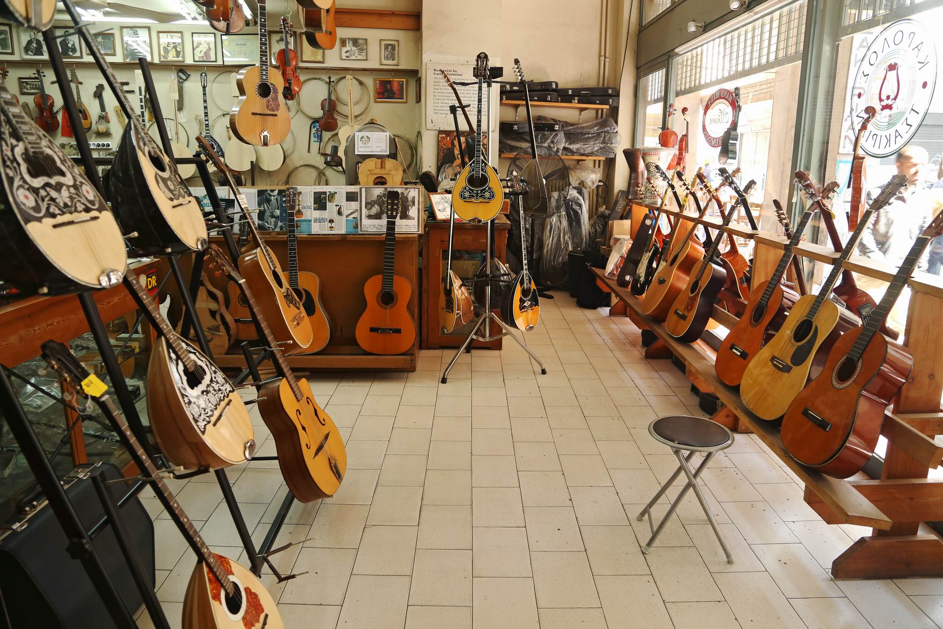 Καταλαβαίνω ότι σε ένα οργανοποιείο το «μην αγγίζετε» δεν ισχύει ως οδηγία. Μπαίνοντας μέσα θα ακούσεις τον ήχο που βγάζουν χέρια πάνω σε χορδές, ίσως νιώσεις την ανάγκη να τις αγγίξεις κι ας μην έχεις τον τρόπο. Παρότι ξύλινα, τα πράγματα μοιάζουν εκεί μέσα πολύτιμα αν αναλογιστείς ότι φτιάχνονται από μια οικογένεια που έχει ιστορία σχεδόν 100 ετών, άρα, κάτι γίνεται καλά στον αριθμό 5 της οδού Αριστοτέλους.