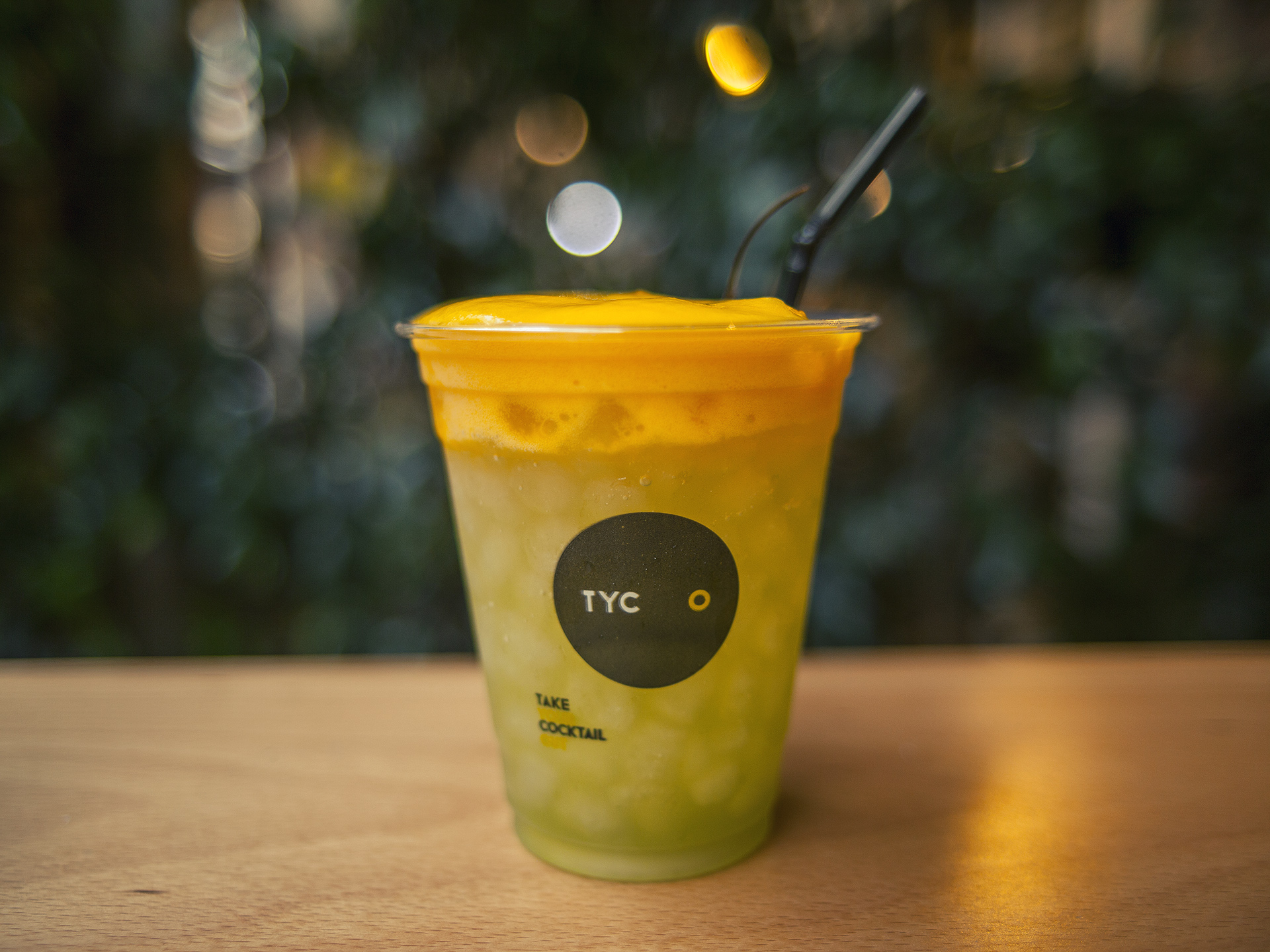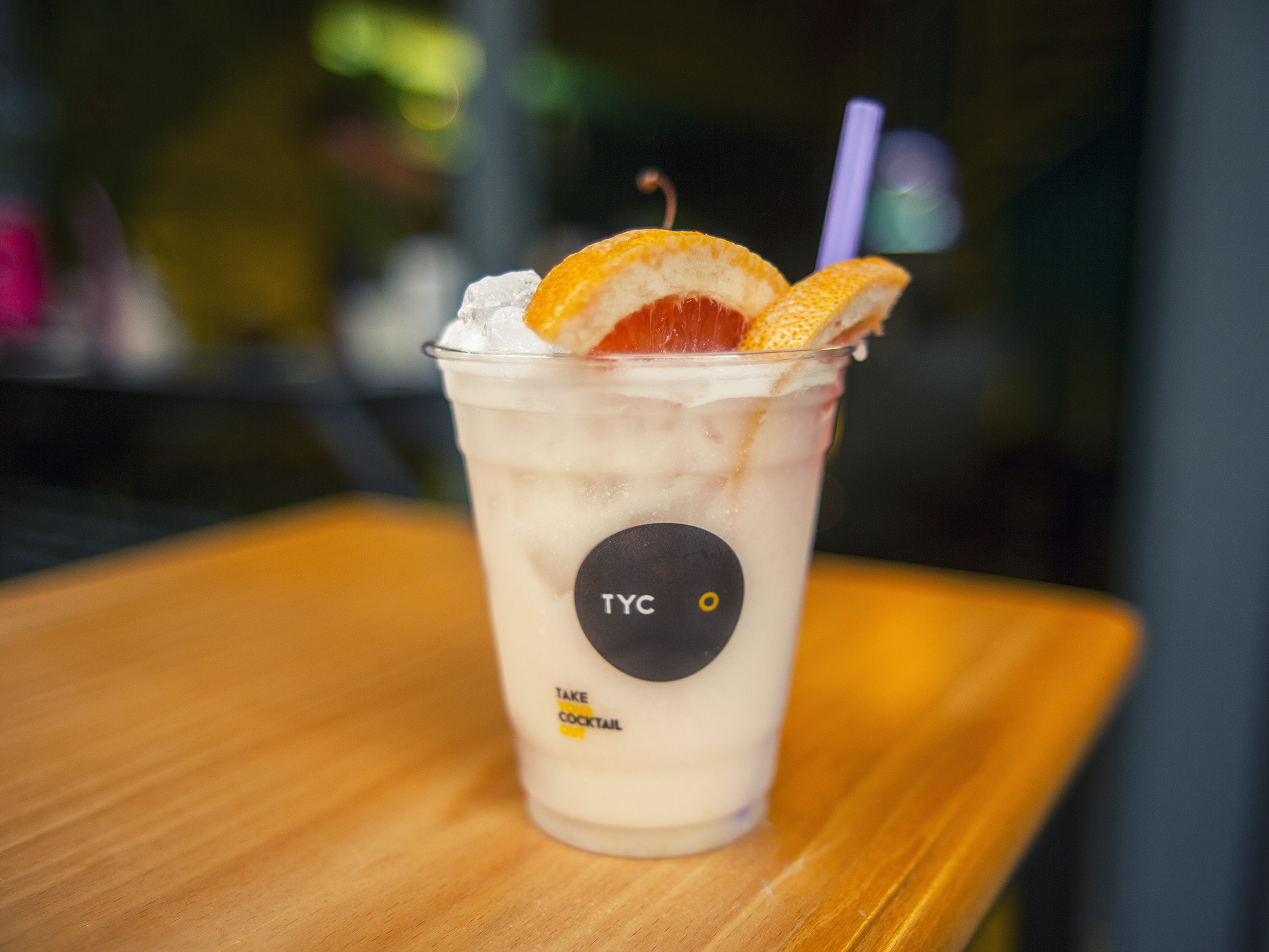 TYCO σημαίνει “Take Your Cocktail Out” κι αυτό είναι το #5 με λευκή τεκίλα, λικέρ από πορτοκάλι και βατόμουρο, καρύδα, ανανά, λικέρ κίτρο
