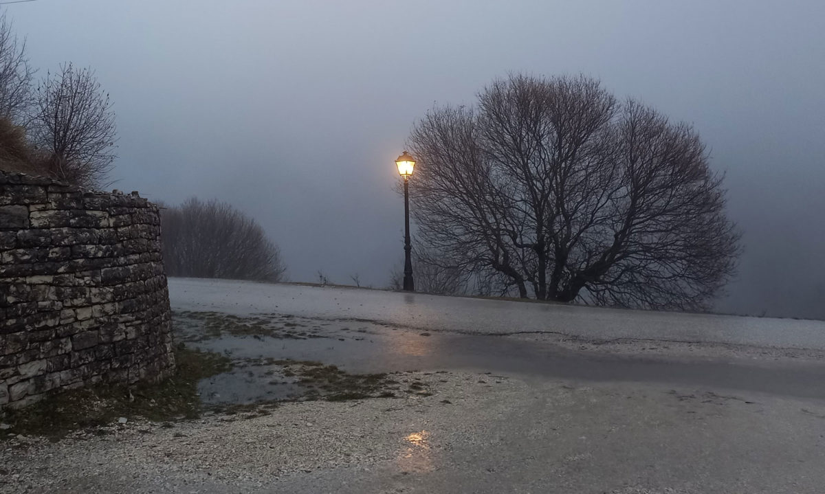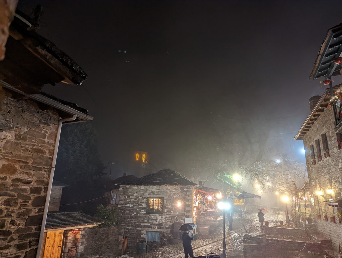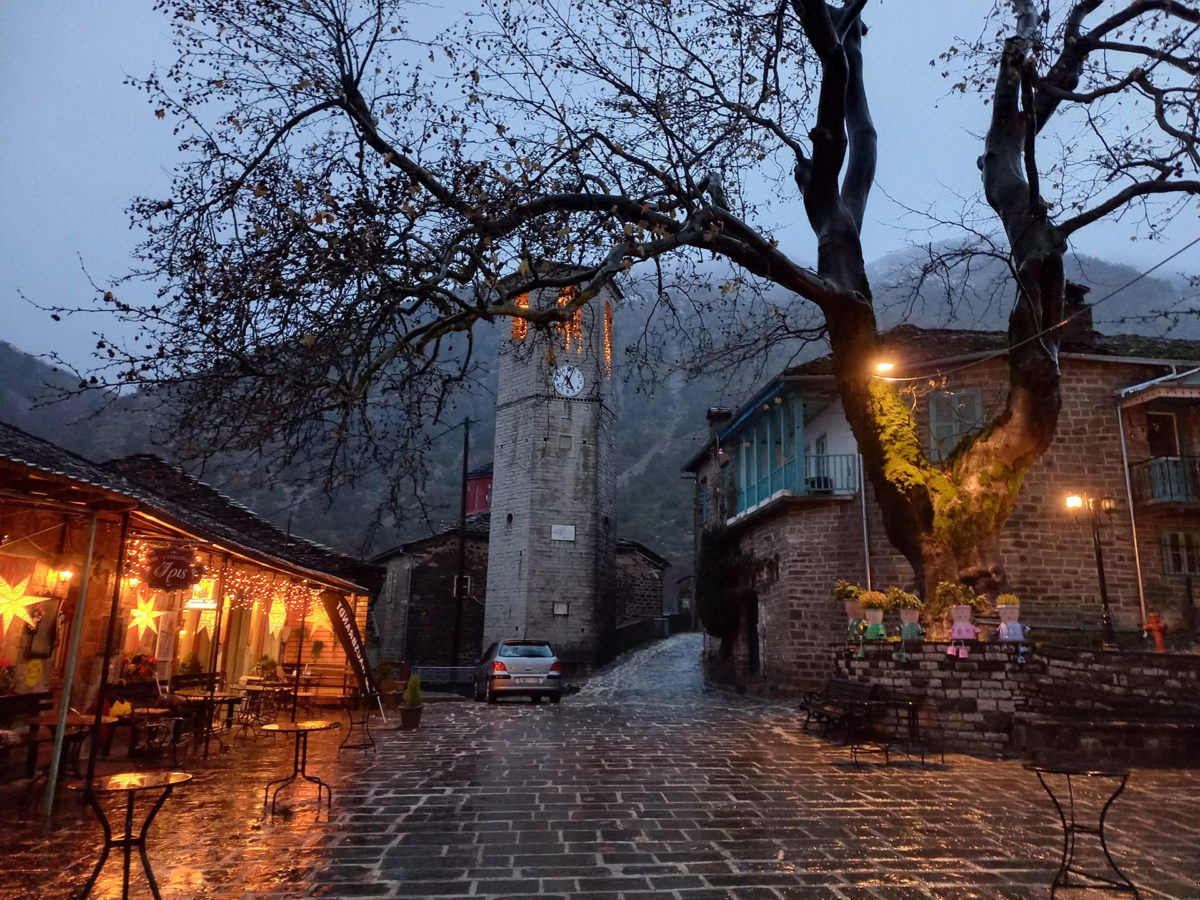 Λένε ότι αν δεν χιονίζει τον χειμώνα στα Ζαγοροχώρια, πρέπει να είσαι προετοιμασμένος για πολλή βροχή. Οι τελευταίες ημέρες της φετινής χρονιάς στους πρόποδες της Πίνδου το επιβεβαιώνουν. Ομίχλη, ατμοσφαιρικά φώτα, υγρά πέτρινα σπίτια, ταραγμένα ποτάμια, επιβλητικά παλιά γεφύρια, καλύβες που μοιάζουν βγαλμένες από χωριό μαγισσών. Και κάπου εκεί και ο Τιμ Μπάρτον με μια Χριστουγεννιάτικη ιστορία. Ένα γκοθ παραμύθι σε έναν τόπο που ο χειμώνας είναι ένα ατέρμονο σούρουπο.