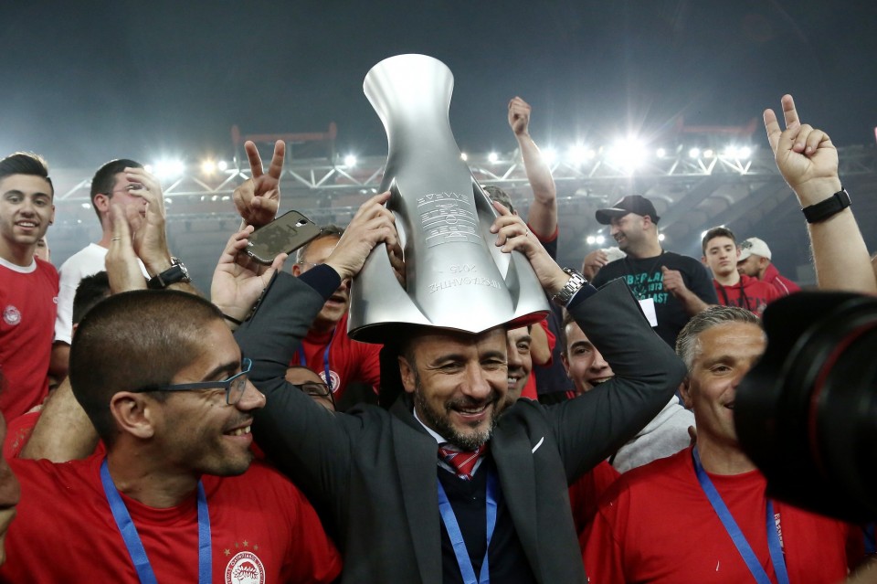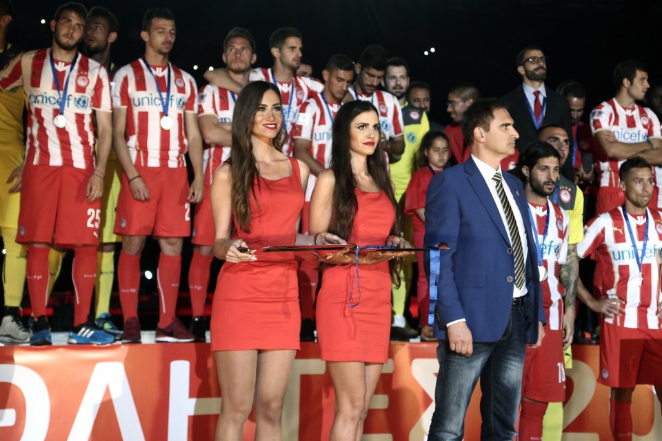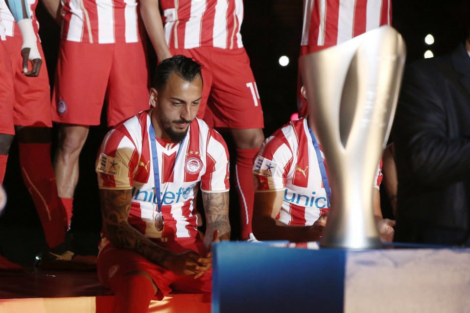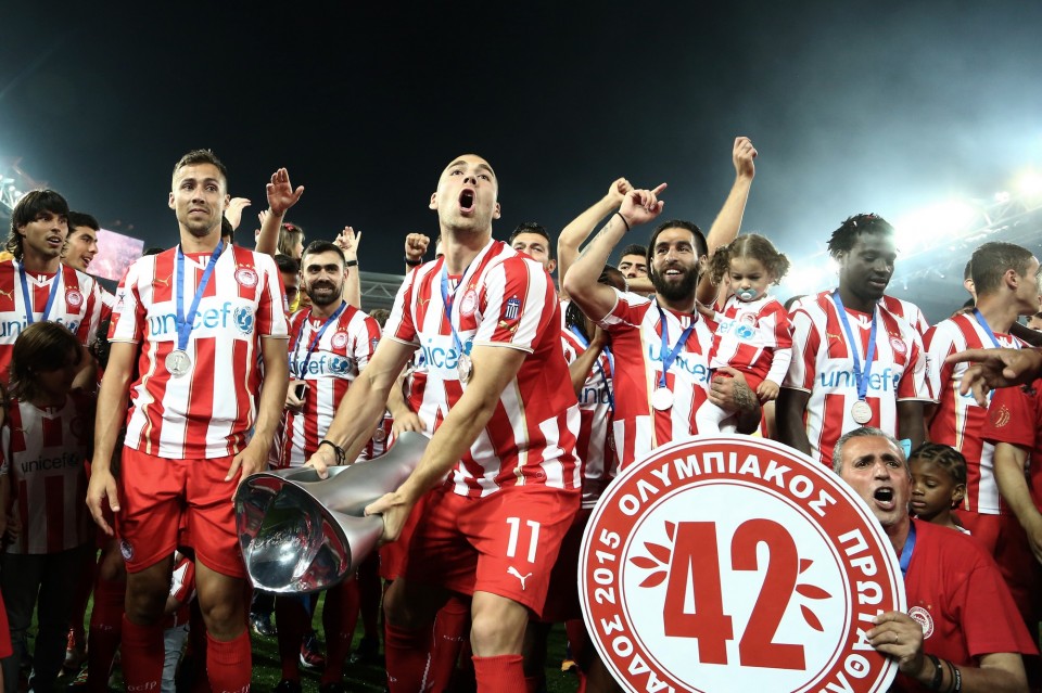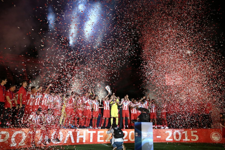Ο ποδοσφαιρικός Ολυμπιακός κατέκτησε για 42ο φορά στην ιστορία του το ελληνικό πρωτάθλημα. Το γιόρτασε με μια ακόμη φιέστα στον εντός έδρας αγώνα απέναντι από την Καλλονή (5-0 το τελικό σκορ). Η κατάκτηση είναι αφιερωμένη στο Μίκη Θεοδωράκη. Στις φωτογραφίες του Παναγιώτη Τζάμαρου θα δείτε τους παίκτες να πανηγυρίζουν, τους φιλάθλους να επιτίθενται στον αναπληρωτή υπουργό Πολιτισμού, Γιώργο Κοντονή και τον προπονητή της ομάδας να φοράει το κύπελλο-καπέλο.