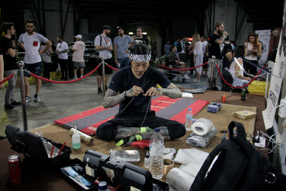 Το καθιερωμένο ραντεβού των εραστών της δερματοστιξίας έγινε και φέτος για ενδέκατη χρονιά στο Γήπεδο Taekwondo στο Παλαιό Φάληρο το τριήμερο 12-14 Μαίου με χιλιάδες «χτυπημένους» και μη να δίνουν το παρόν στην μεγάλη γιορτή του tattoo. Μπαίνοντας μέσα στο χώρο ο ήχος από τις εν δράσει βελόνες σχεδόν κάλυπτε την μουσική μιας και σε κάθε πάγκο οι artists «χτυπούσαν» μανιωδώς. Κάνοντας μία γύρα μπορούσες να δεις tattoo για όλα τα γούστα: από ολντσκουλιές μέχρι ρεαλιστικά σχέδια και από traditional japanese μέχρι watercolor από όλη την αφρόκρεμα των ντόπιων tattoo studios. Φυσικά, όπως κάθε χρόνο υπήρχαν και πολλοί καλεσμένοι από το εξωτερικό, όλοι κορυφαίοι στο είδος τους. Δεν έλειπαν και τα παράλληλα events, με αιθέριες παρουσίες σε performances αλλά και διαγωνισμούς που αναδείκνυαν τους νικητές artists στην εκάστοτε κατηγορία. Είτε χτύπησες tattoo είτε όχι, σίγουρα θα έφυγες με πολλά δωράκια όπως κονκάρδες, stickers και αφισάκια με έργα των καλλιτεχνών. Μέχρι του χρόνου και το επόμενο Athens Tattoo Convention ας αφήσουμε καλύτερα τις εικόνες να μιλήσουν από μόνες τους.