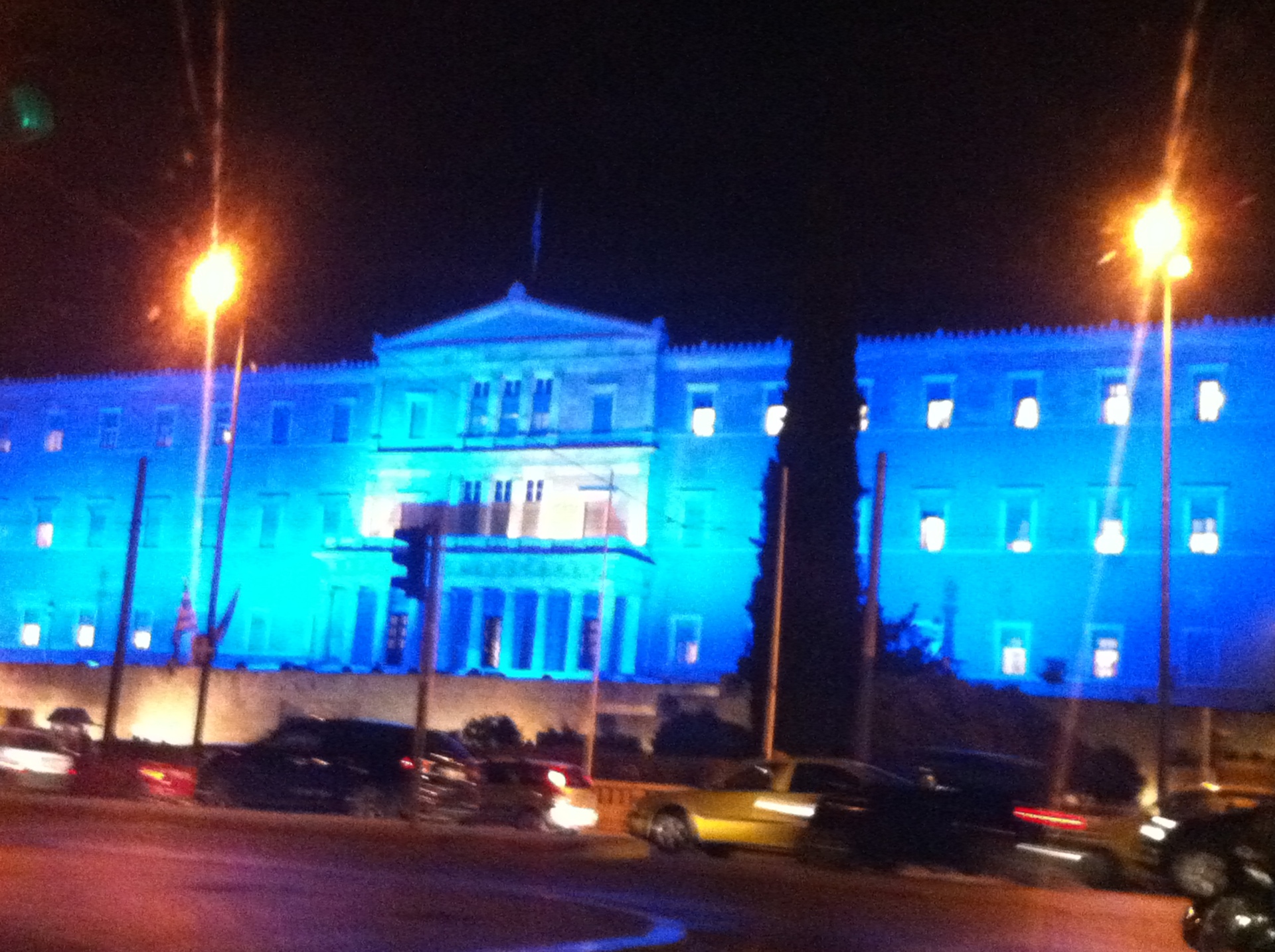 Ενώ μέσα στο Κοινοβούλιο τα αίματα έχουν ανάψει για τη συζήτηση για την ΕΡΤ, το κτίριό της εξωτερικά έχει φωταγωγηθεί για πρώτη φορά με μπλε χρώμα, λόγω δοκιμών φωτισμού της εκδήλωσης των Μπλέ Φωτισμένων Μνημείων για την Παγκόσμια Ημέρα Διαβήτη.