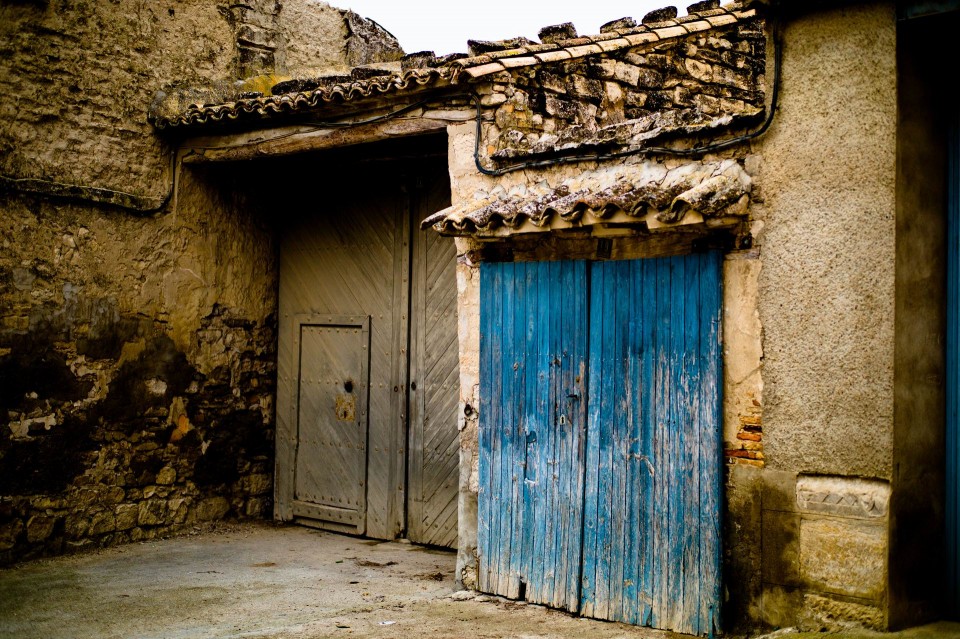 Μπλε ξύλινη πόρτα. Λος Μονέγρος, Αραγονία, βορειοανατολική Ισπανία