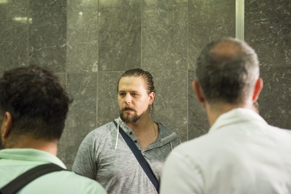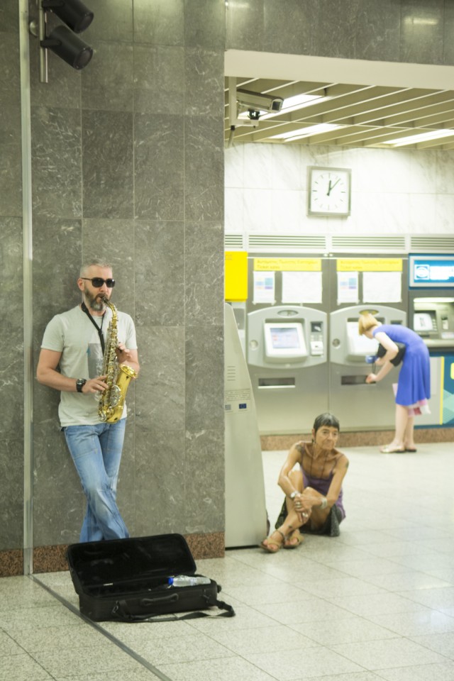 Θεατρικό δρώμενο έκπληξη από το Εθνικό Θέατρο στον σταθμό του μετρό Σύνταγμα, Αθήνα, Ιούλιος 2016