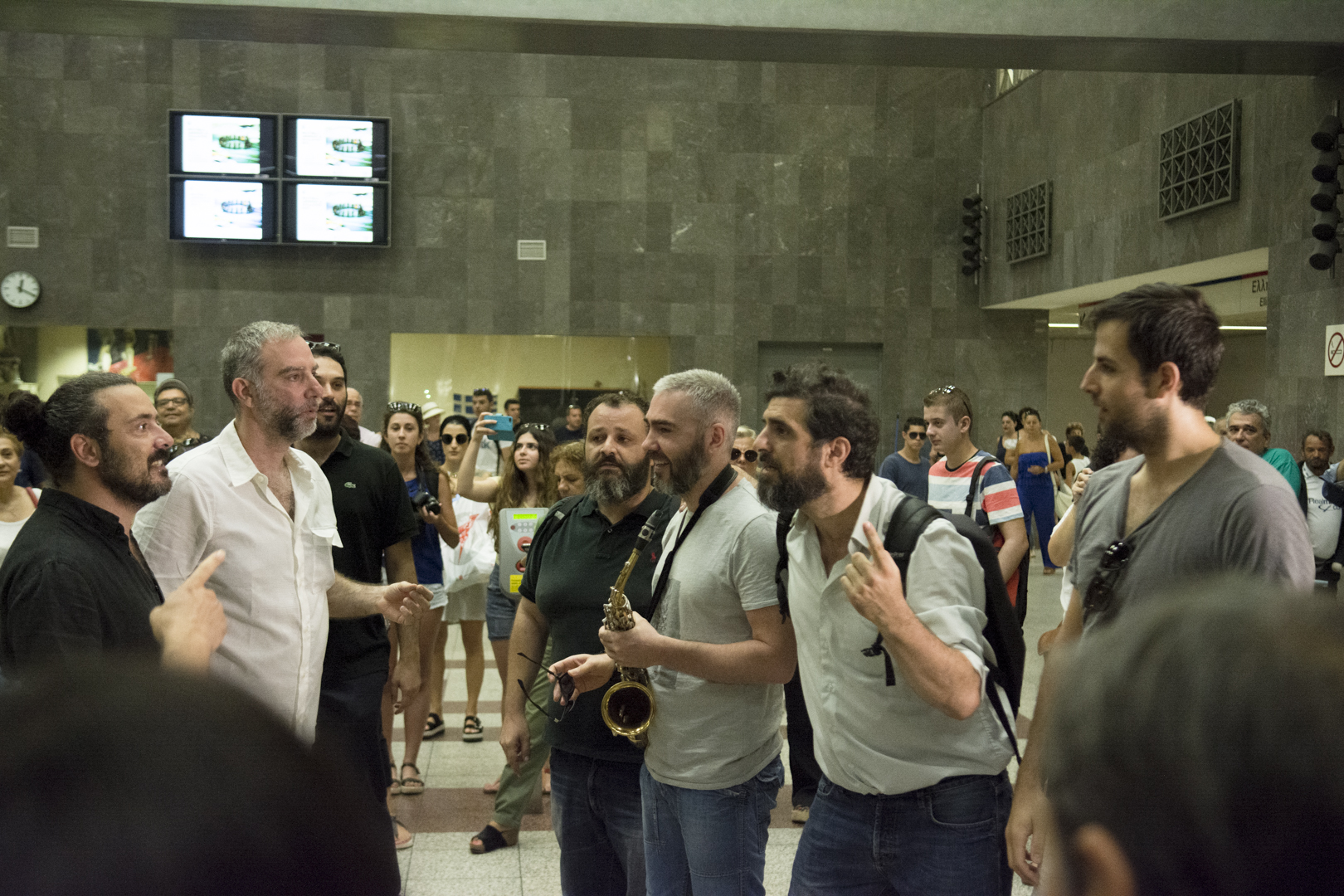 Θεατρικό δρώμενο έκπληξη από το Εθνικό Θέατρο στον σταθμό του μετρό Σύνταγμα, Αθήνα, Ιούλιος 2016