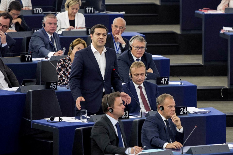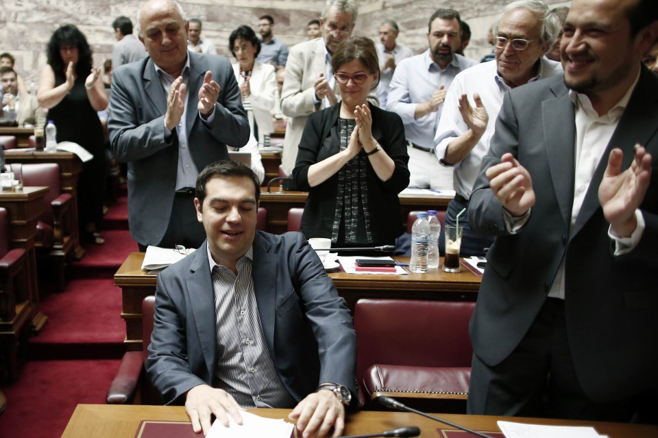 Ο πρωθυπουργός Αλέξης Τσίπρας χειροκροτείται. Κοινή συνεδρίαση της Κοινοβουλευτικής ομάδας και της πολιτικής γραμματείας του ΣΥΡΙΖΑ, προκειμένου να συζητηθεί το κείμενο του αιτήματος της Ελληνικής κυβέρνησης για νέα συμφωνία-μνημόνιο. Αθήνα, Παρασκευή 10 Ιουλίου 2015.