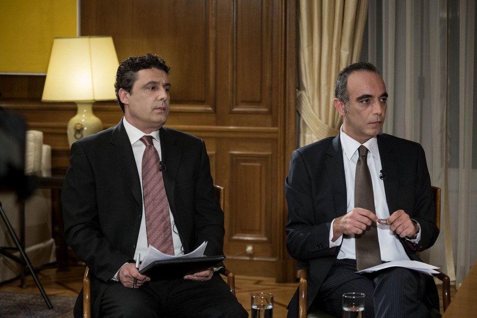 ο Πρωθυπουργός Αλέξης Τσίπρας παραχωρεί συνέντευξη στην ΕΡΤ και στους δημοσιογράφους Πάνο Χαρίτο και Αντώνη Αλαφογιώργο. Αθήνα, Τρίτη 14 Ιουλίου 2015.